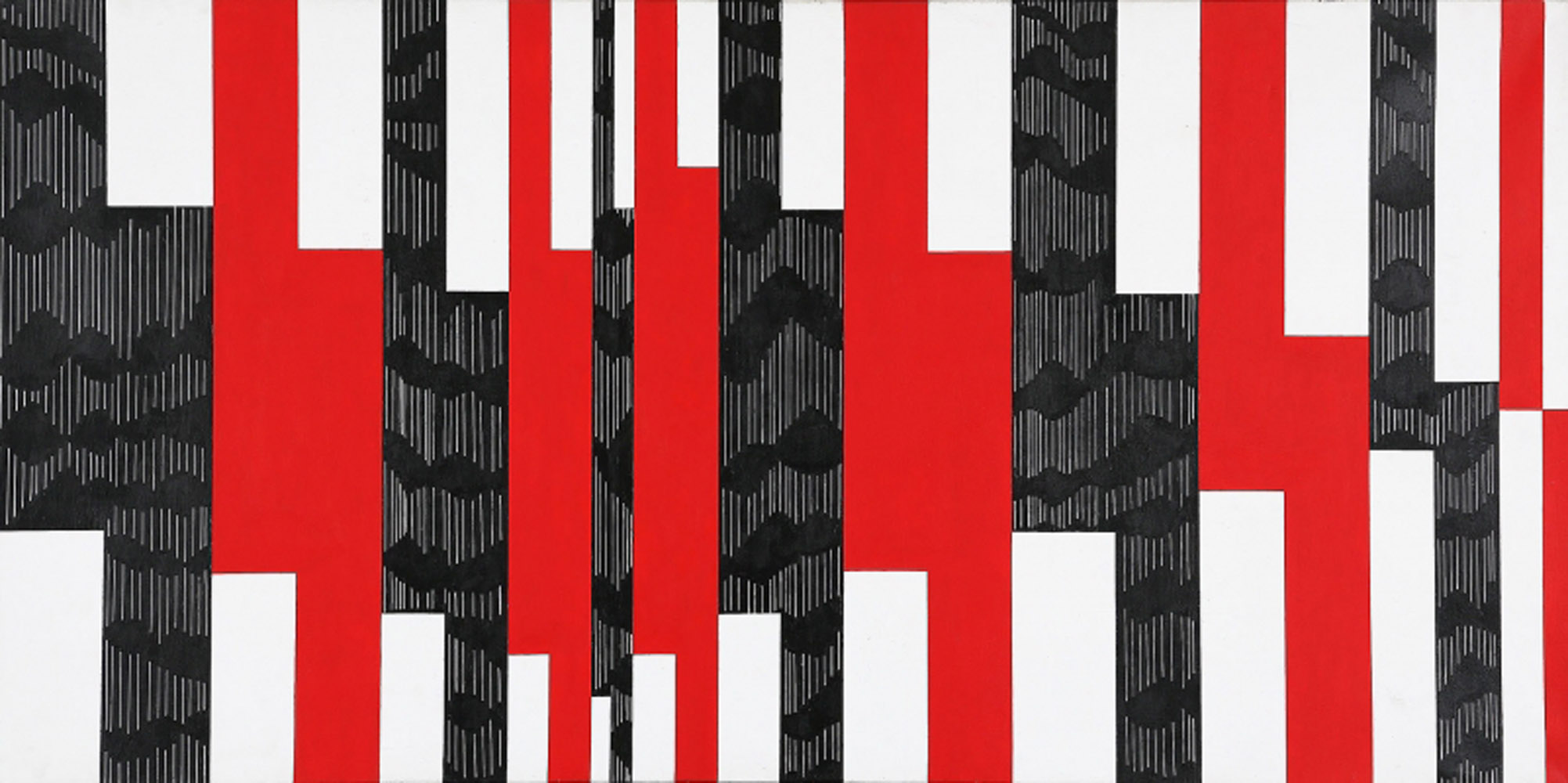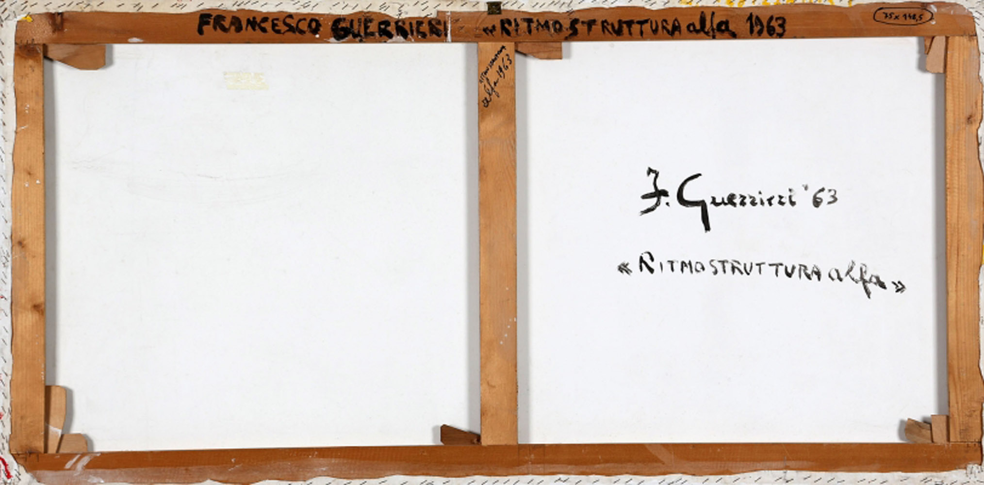 FRANCESCO GUERRIERI 1931 – 2015 Ritmo struttura alfa, 1963 Acrilico su tela, cm. 75 x 149 Firmato e datato sul retro Autentica dell’artista su fotografia Prov. Collezione Privata