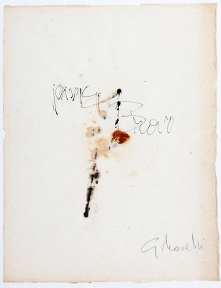 GASTONE NOVELLI 1925 – 1968 Bravo Bravo, 1957 Tecnica mista su carta giapponese, cm. 35 x 27 Firmato in basso a destra Autentica dell’Archivio Gastone Novelli su fotografia Prov. Collezione Privata