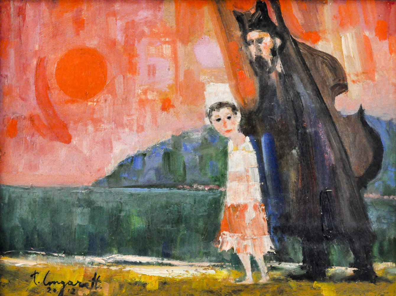 TRENTO LONGARETTI "Vecchio musicante e bambino alla marina", 2012, olio su...