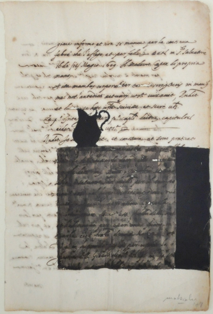 CARLO MATTIOLI "Natura morta", 1981, tecnica mista su carta antica, 30 x 20.5...