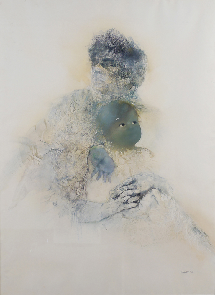 Renzo Vespignani Roma 1924-2001 100x71 cm. "Renzo e Marta", tecnica mista su carta, firmata in basso a destra Vespignani '71, entro cornice