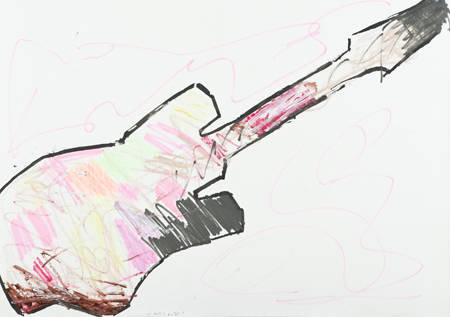 Giuseppe Chiari Firenze 1926 - Firenze 2007 Chitarra Tecnica mista su carta, cm. 50x70 Firmato in basso a sinistra.