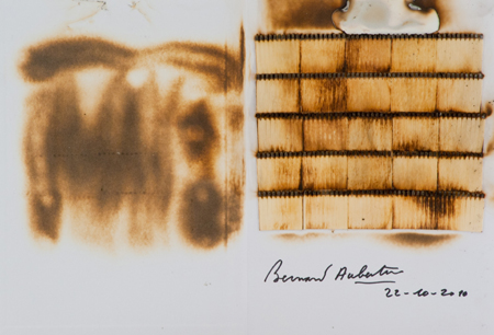 Bernard Aubertin Fotenay aux Roses 1934 Senza titolo, 2010 Fiammiferi bruciati su libro d'Artista, cm. 31x45, in teca di plexiglass Firma e data in basso a destra. Autentica dell'Artista su foto.