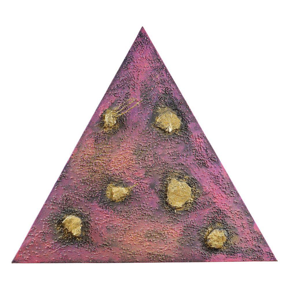 "Piramide", tecnica mista su tela strutturata, 2008, titolo anno e firma dell'artista sul retro.