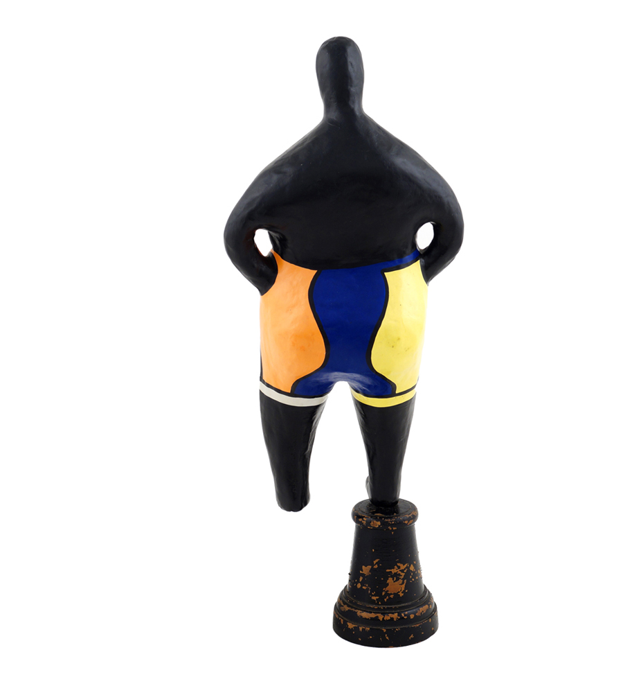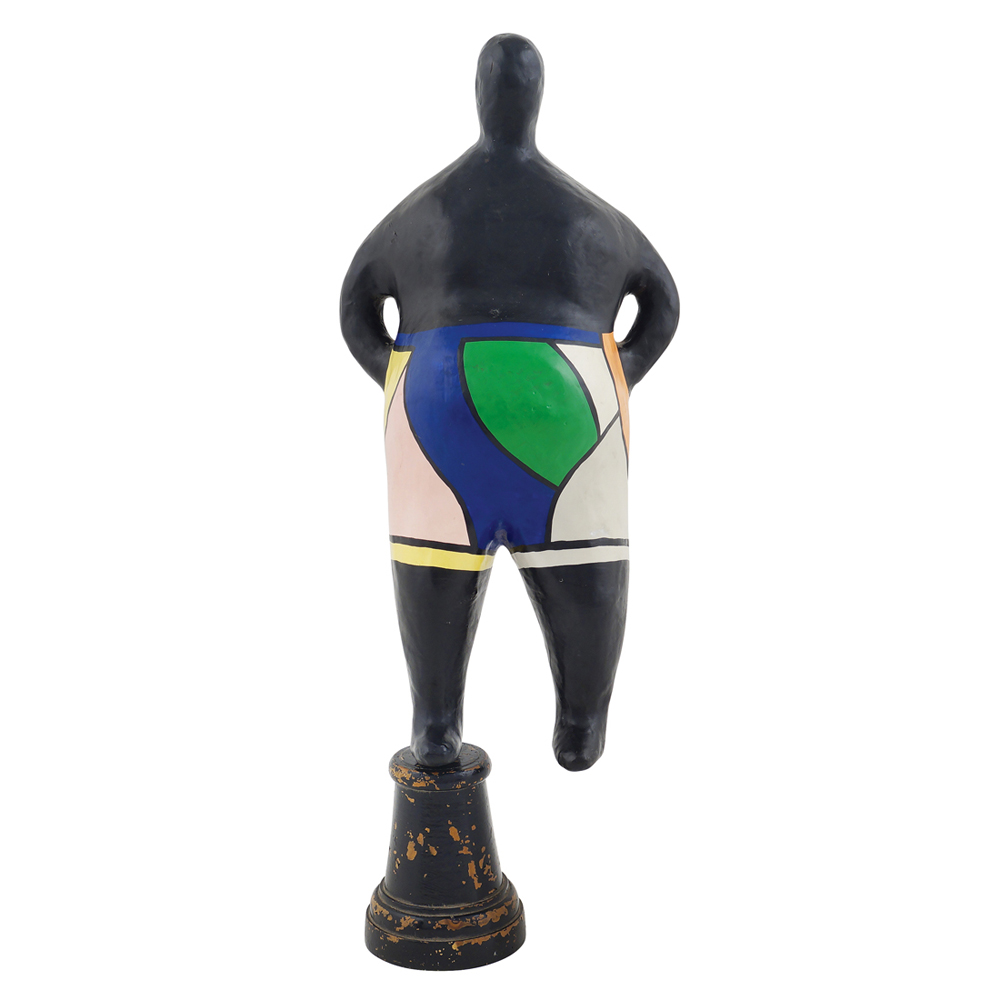 Artista sconosciuto XX Sec. h. 34,5 cm. "Senza titolo", scultura in cartapesta colorata, poggiante su base a plinto