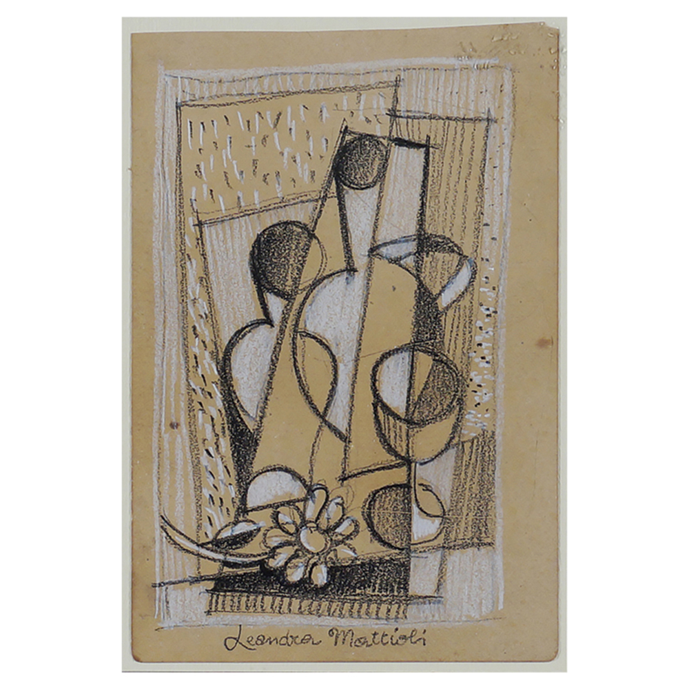 Leandra Mattioli Italia XX Sec. 19x13 cm. "Senza titolo", matite su carta, firmato in basso a destra, entro cornice