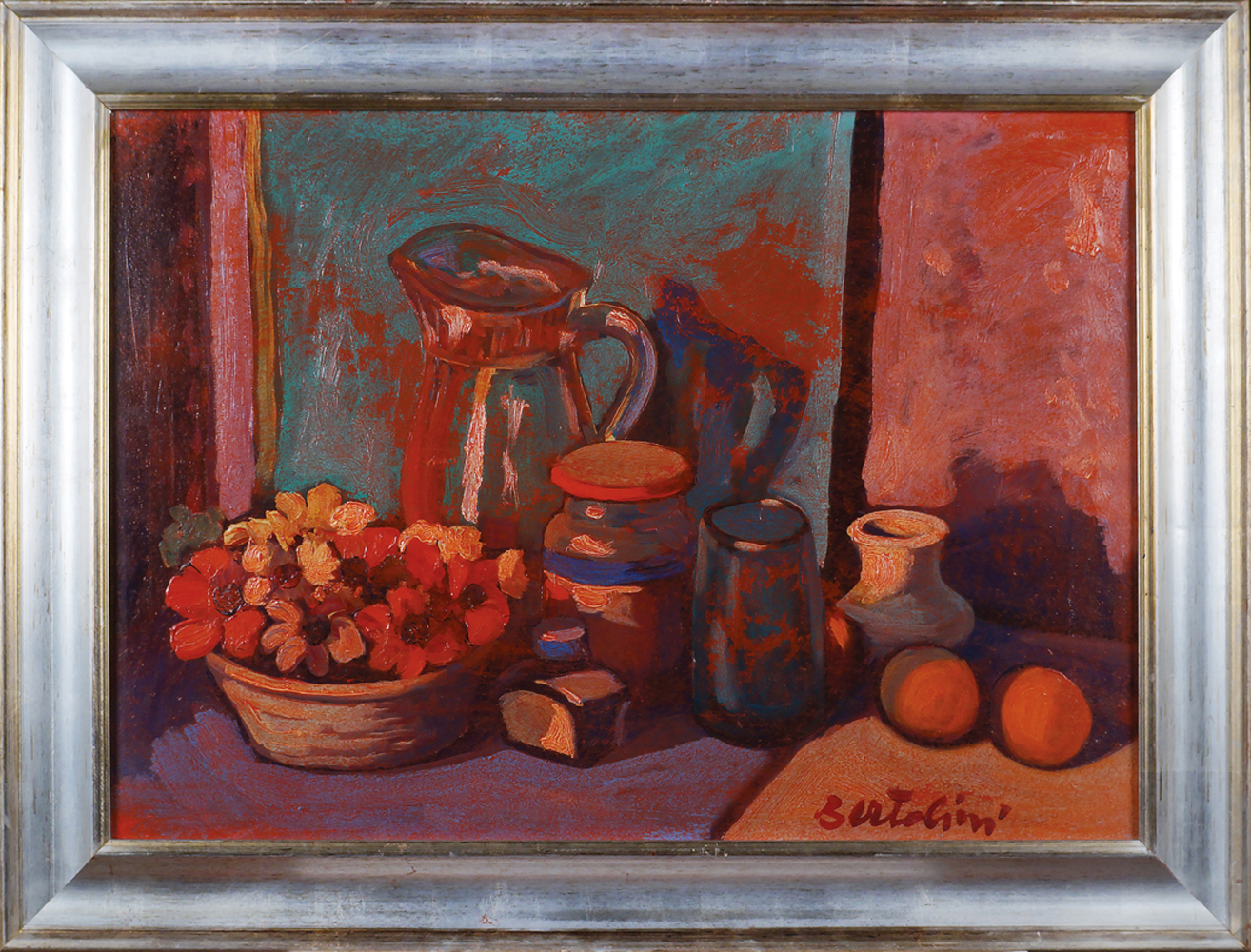 Giuseppe Bertolini Italia, XX Sec. 50x70 cm. "Natura morta con fiori e...