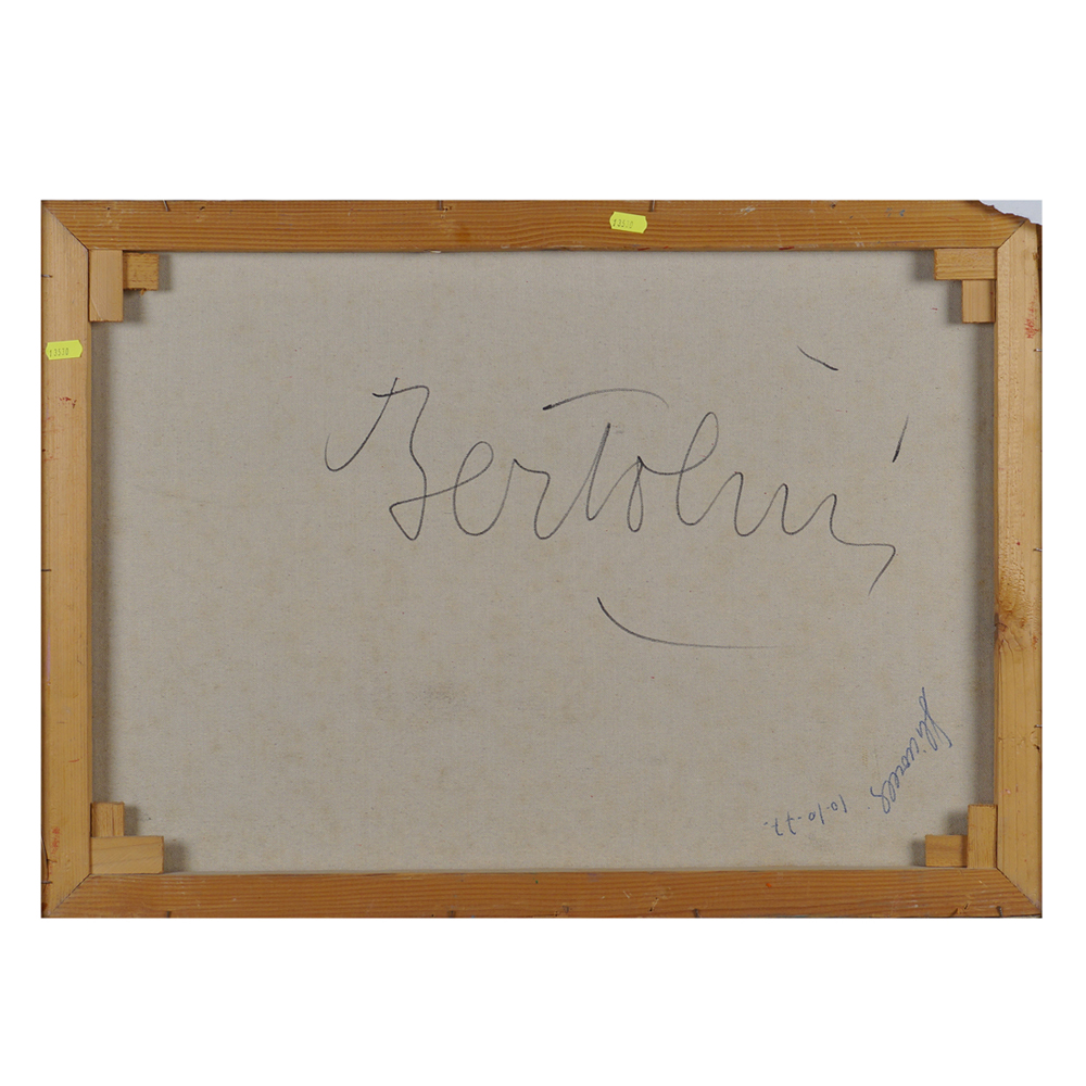 Giuseppe Bertolini Italia, XX Sec. 50x70 cm. "Natura morta con fiori e frutta", olio su tela, firmato in basso a destra e sul retro, entro cornice