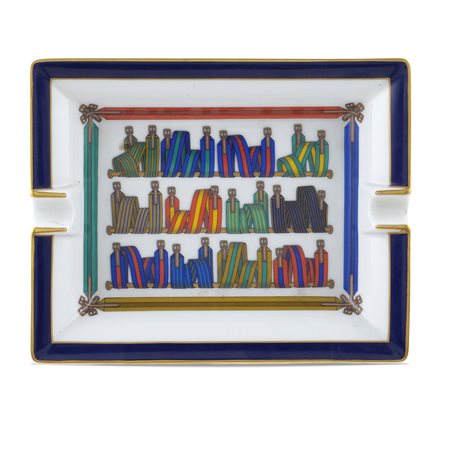 Hermes, posacenere in porcellana Francia, XX Sec. 4x20x16 dipinto in...