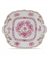 Herend, vassoio centrotavola XX Sec. 28,5x24 cm. di forma quadrata con bordo sagomato a due manici, dipinto nella tonalità del rosa su fondo bianco decoro " Chinese bouquet purple", marchio sotto la base