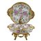 Zuppiera con presentoire in porcellana Limoges Francia, metà XX Sec. 34x29x27 cm. dipinta in policromia a motivi floreali e parzialmente dorata, con finiture, base e presa del coperchio in bronzo dorato