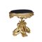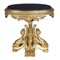 Tavolino ovale da centro in legno dorato XX Sec. 78x80x60 cm. ed intagliato con motivi di animali mitologici e motivi vegetali, piano in marmo nero