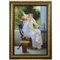 Pittore del XX sec. 90x60 cm. "Figura femminile con amorino", olio su tela, entro cornice in legno laccato e dorato