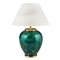 Lampada da tavolo in metallo Francia, XX Sec. h. 71 cm. dipinto e decorato con motivi vegetali su fondo verde, completa di paralume, lievi difetti