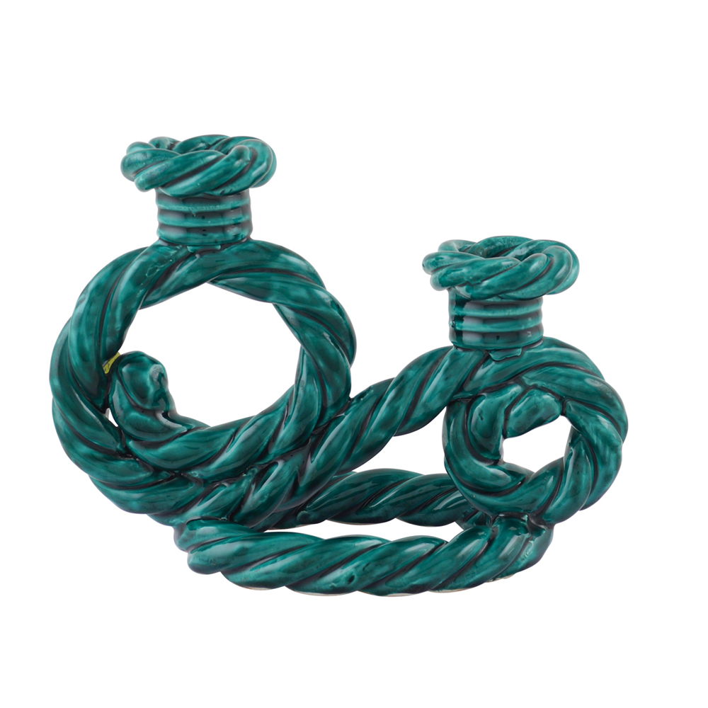 Vallauris, candeliere a due luci XX Sec. h. 16,7 cm. in ceramica nella tonalità del verde, firmato sotto la base