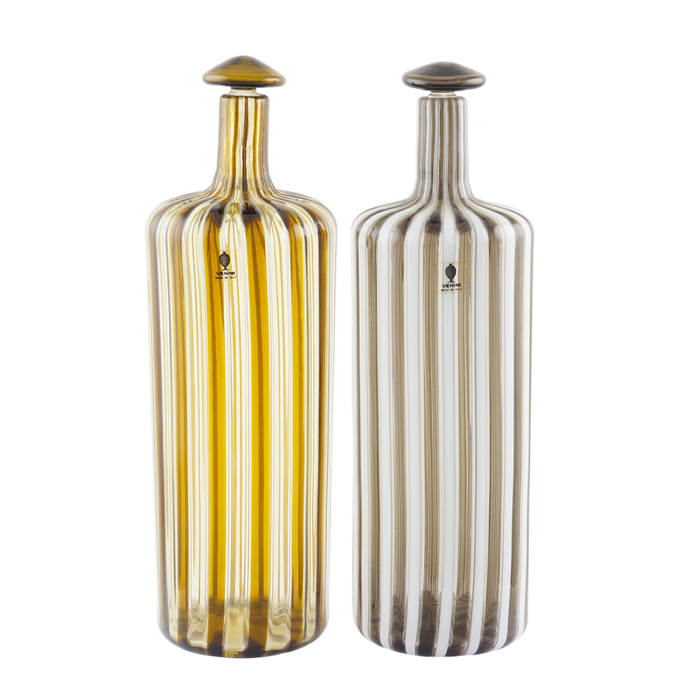 Venini, coppia di bottiglie a canne Murano, XX Sec. h. 30 in vetro soffiato...