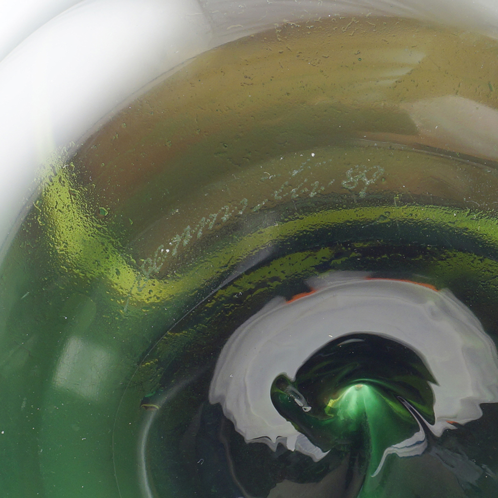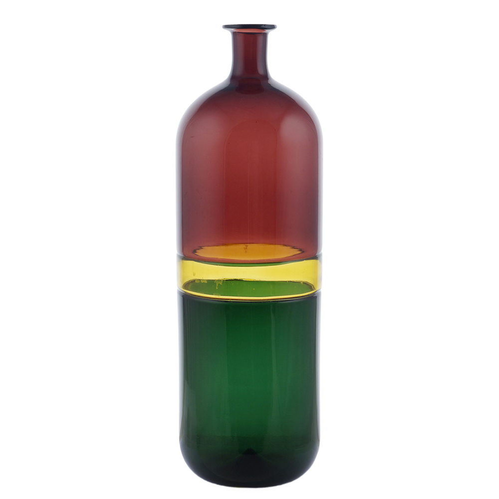 vaso serie Bolle, in vetro policromo soffiato e realizzato a mano con la tecnica detta dell' “incalmo”, che consiste nella saldatura a caldo di due soffiati aperti, firma incisa sotto la base Venini Italia 89