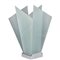 Lampada da tavolo in metallo e vetro Francia, XX Sec. h. 58 cm. struttura architettonica composta da quattro elementi in vetro satinato, base quadrata in metallo argentato con finitura lucida
