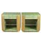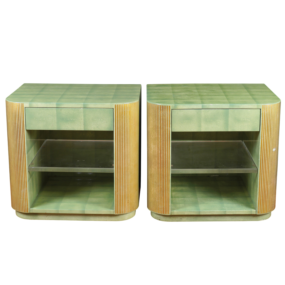 Coppia di comodini di linea bombata Francia, vecchia manifattura dim. 55,5x60x45 cm. in resina verde e parzialmente dorata a simulare "galuchat" (difetti)