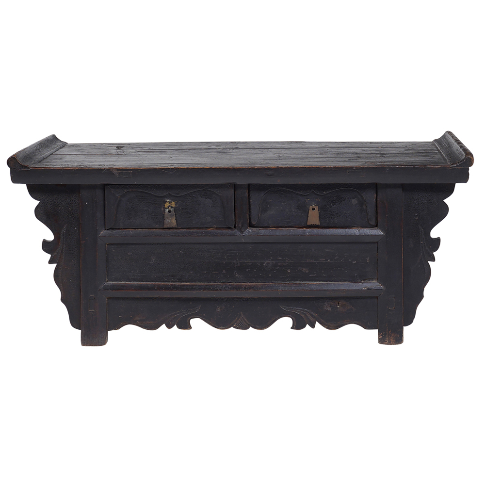 Panchetta in legno Manifattura etnica del XX Sec. 44x103x39 cm. piano di linea mossa con due cassetti sottostanti, lievi difetti