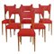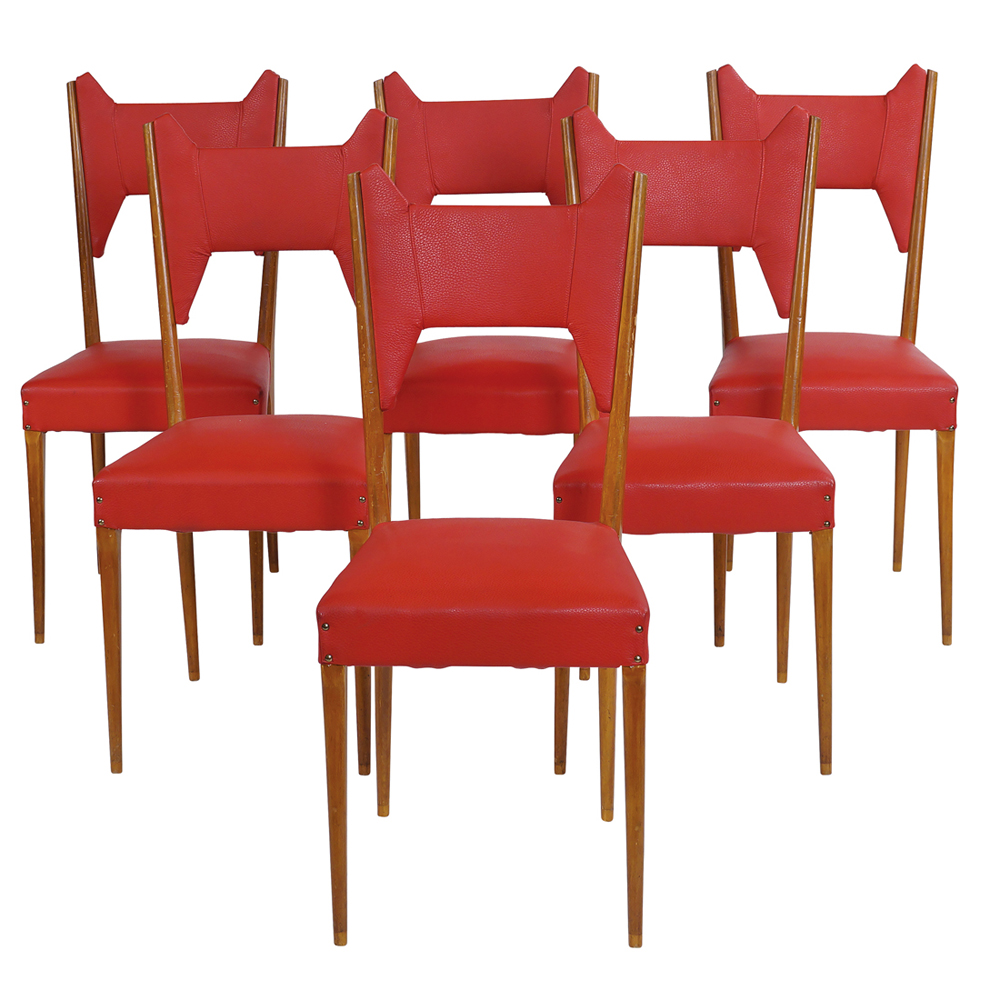 Sei sedie in faggio XX Sec. h. 97 cm. sedute e schienali imbottite e rivestite in ecopelle rossa