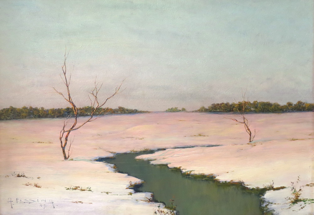 PESSINA A., A. Pessina olio su tavola "Paesaggio innevato" firmato e datato...