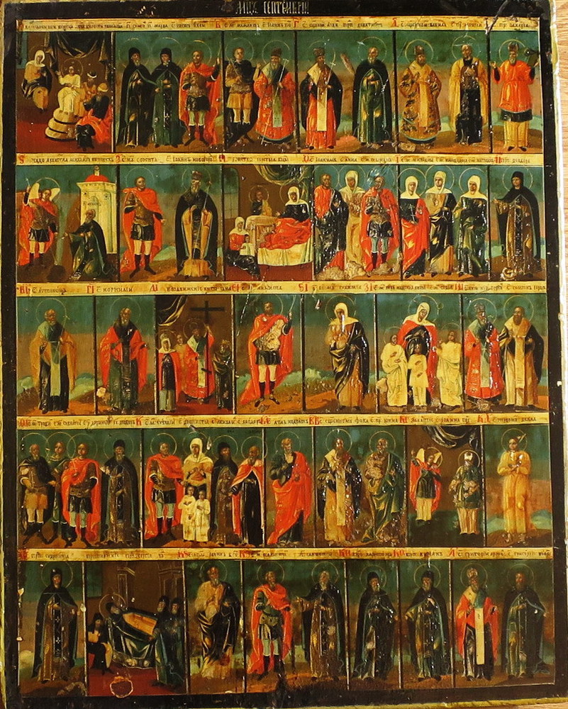 ICONA, Icona dipinta du tavola "Santi" Russia XIX sec. cm 38,5x49