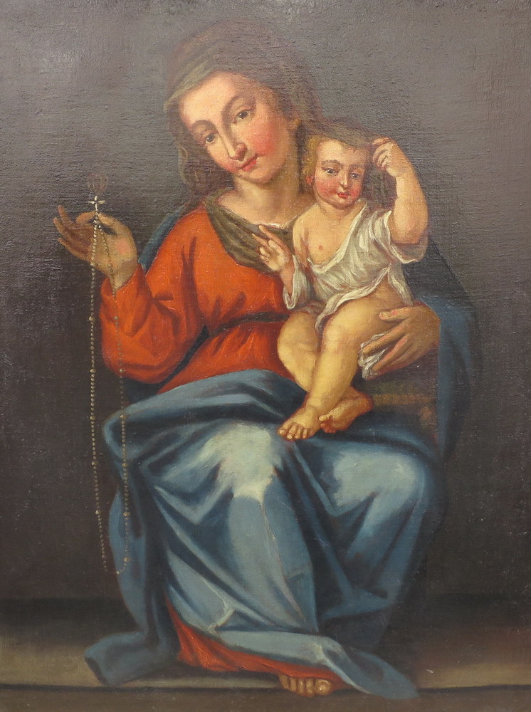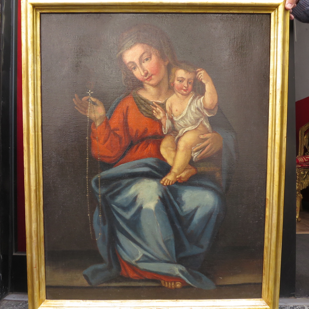 “MADONNA DEL ROSARIO COL BAMBIN GESU'”, Dipinto olio su tela raffigurante "Madonna del Rosario col Bambin Gesù" cm 75x96 XVII sec. cm 75x96