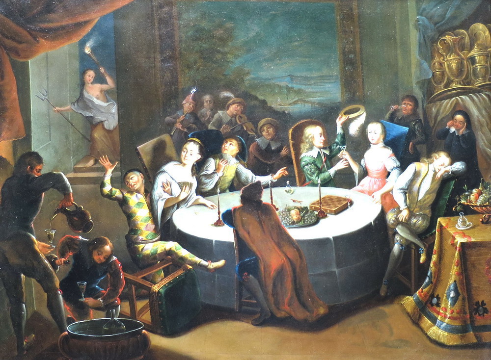 “FIGURE IN FESTA”, Dipinto olio su rame "Figure in festa" Olanda XIX sec. cm...