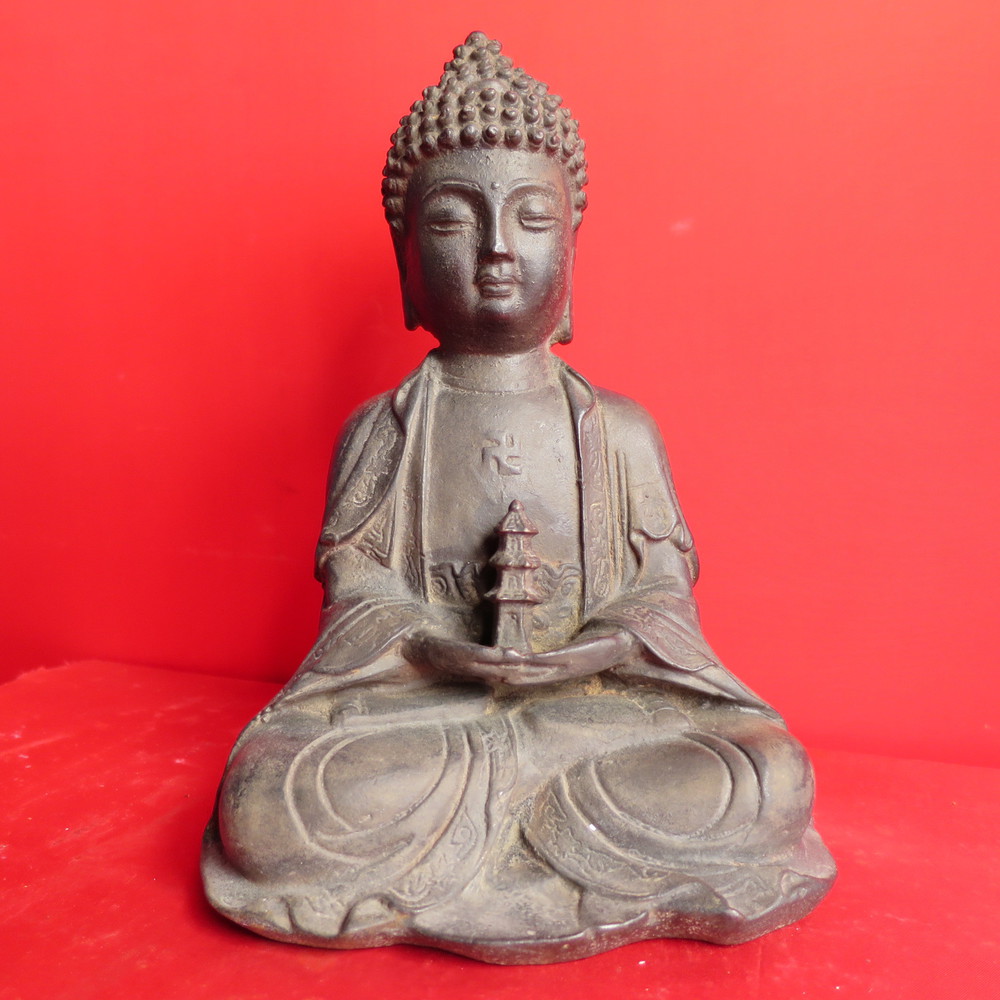 BUDDHA, Scultura in bronzo a patina scura raffigurante un Buddha Cina, XX sec. cm 21