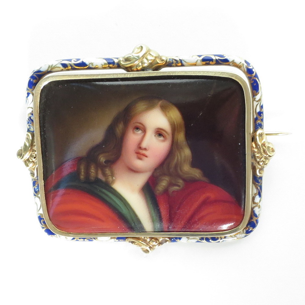 SPILLA, Spilla effige in smalto e oro giallo 18 KT Italia 1800 ca. gr 12,03