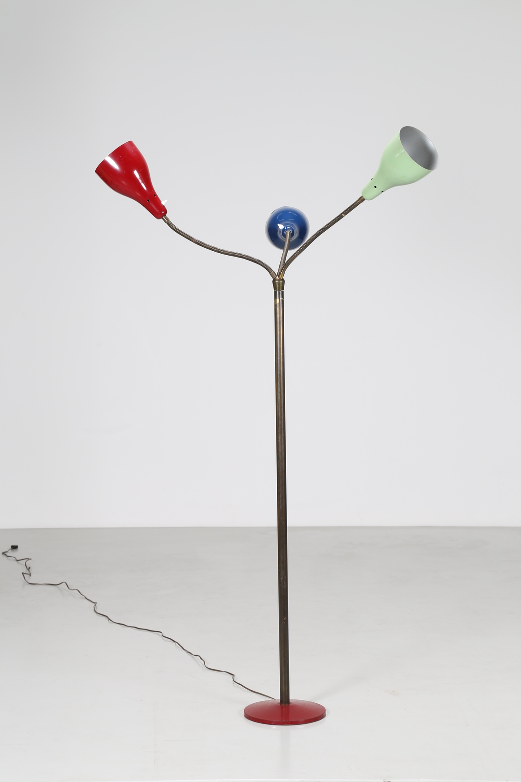 Lot 45 | OSTUNI GIUSEPPE Lampada da terra in ottone e metallo laccato, per Oluce 1950....