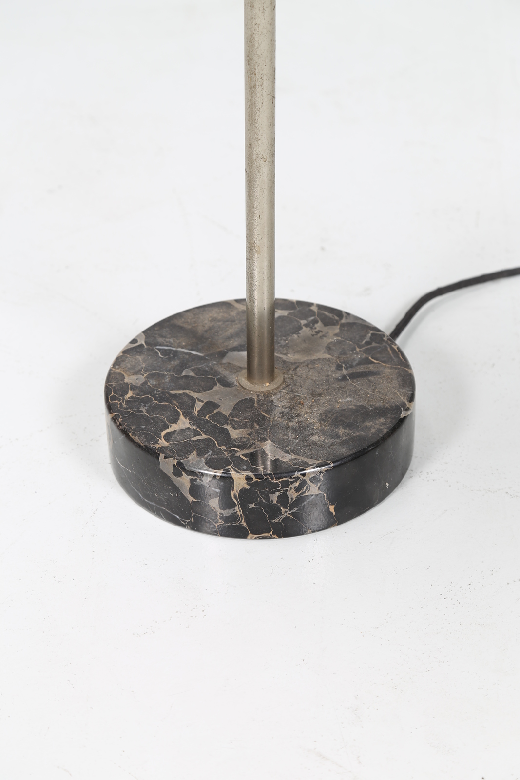 MAZZA SERGIO Lampada da terra in metallo nichelato, diffusore in vetro stampato, base in marmo, per Artemide 1960.