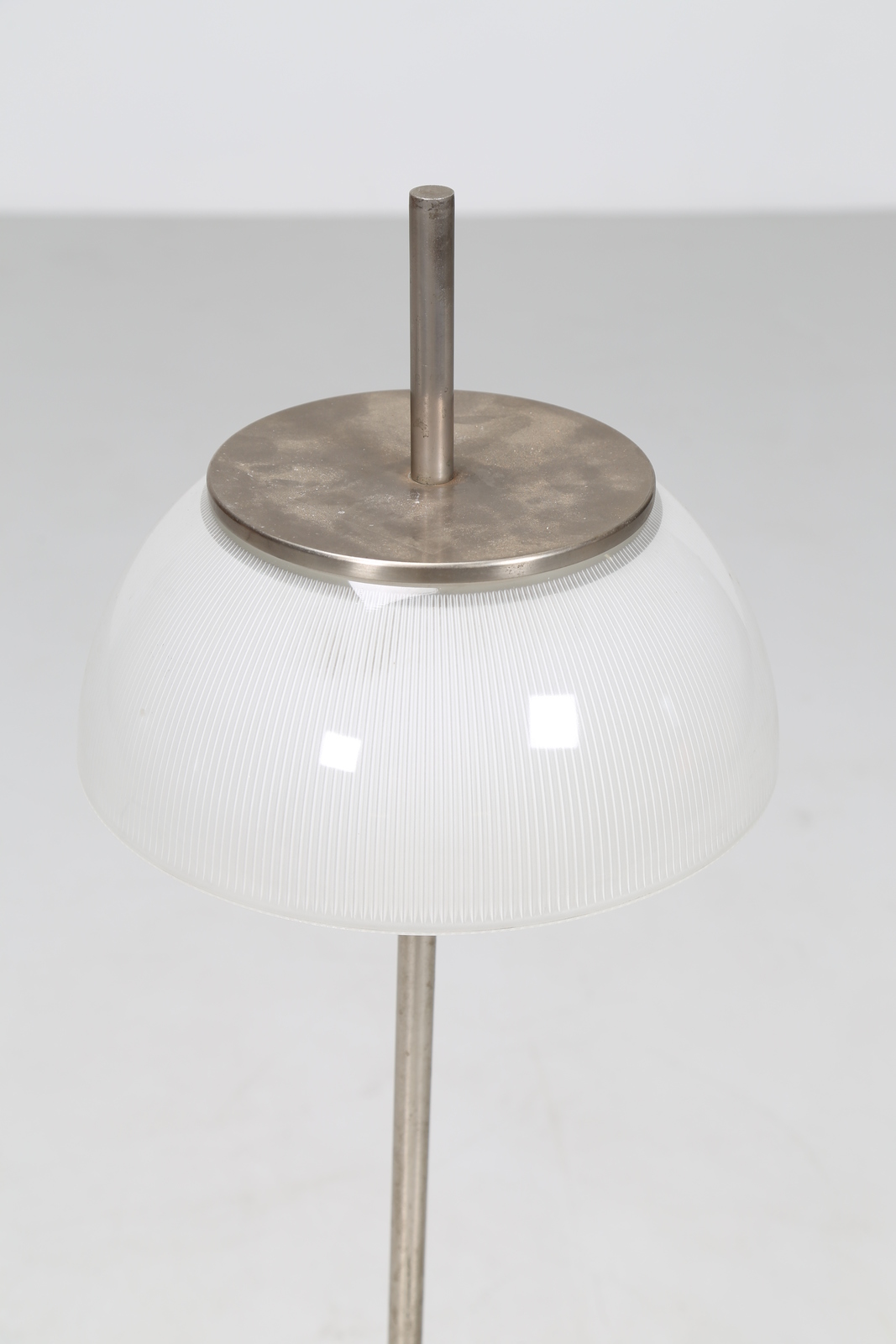 MAZZA SERGIO Lampada da terra in metallo nichelato, diffusore in vetro...