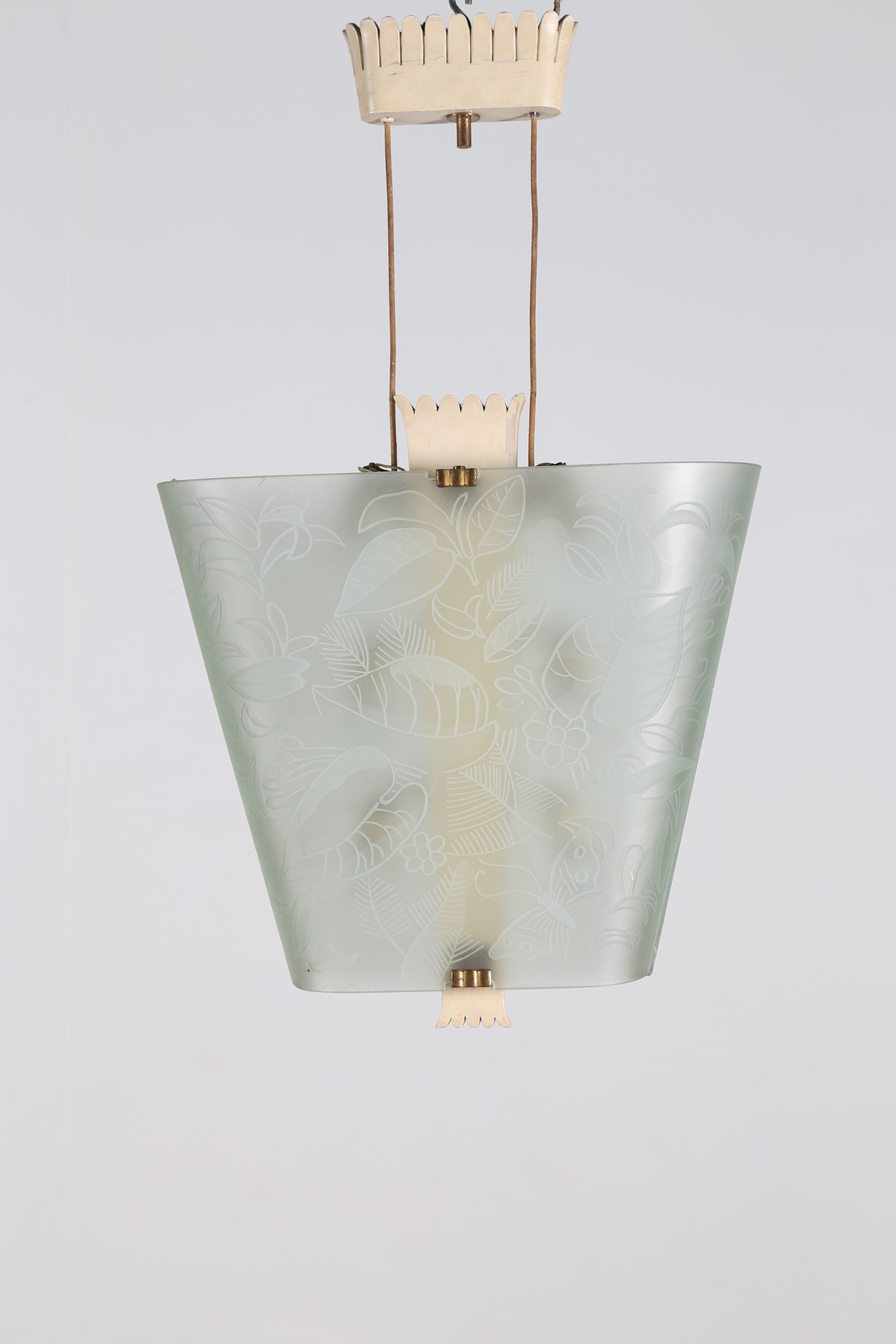 Lot 63 | CHIESA PIETRO (1892 - 1948) Lampadario in legno laccato, ottone, cristallo...