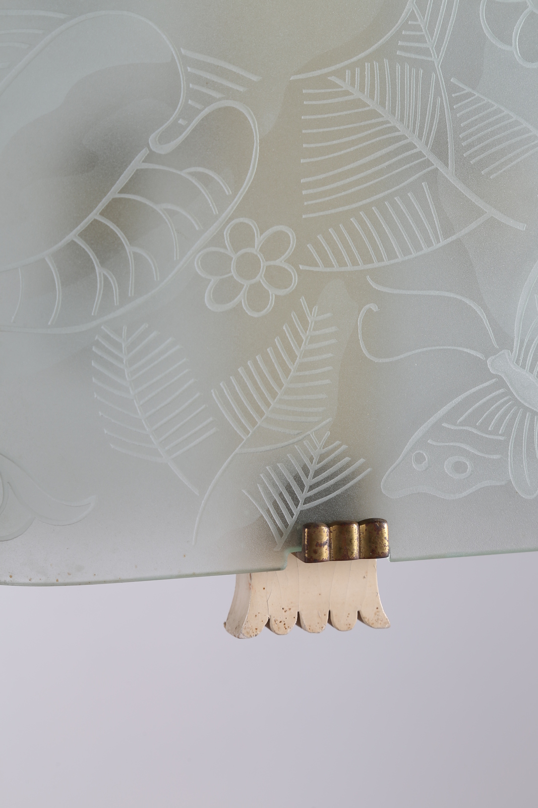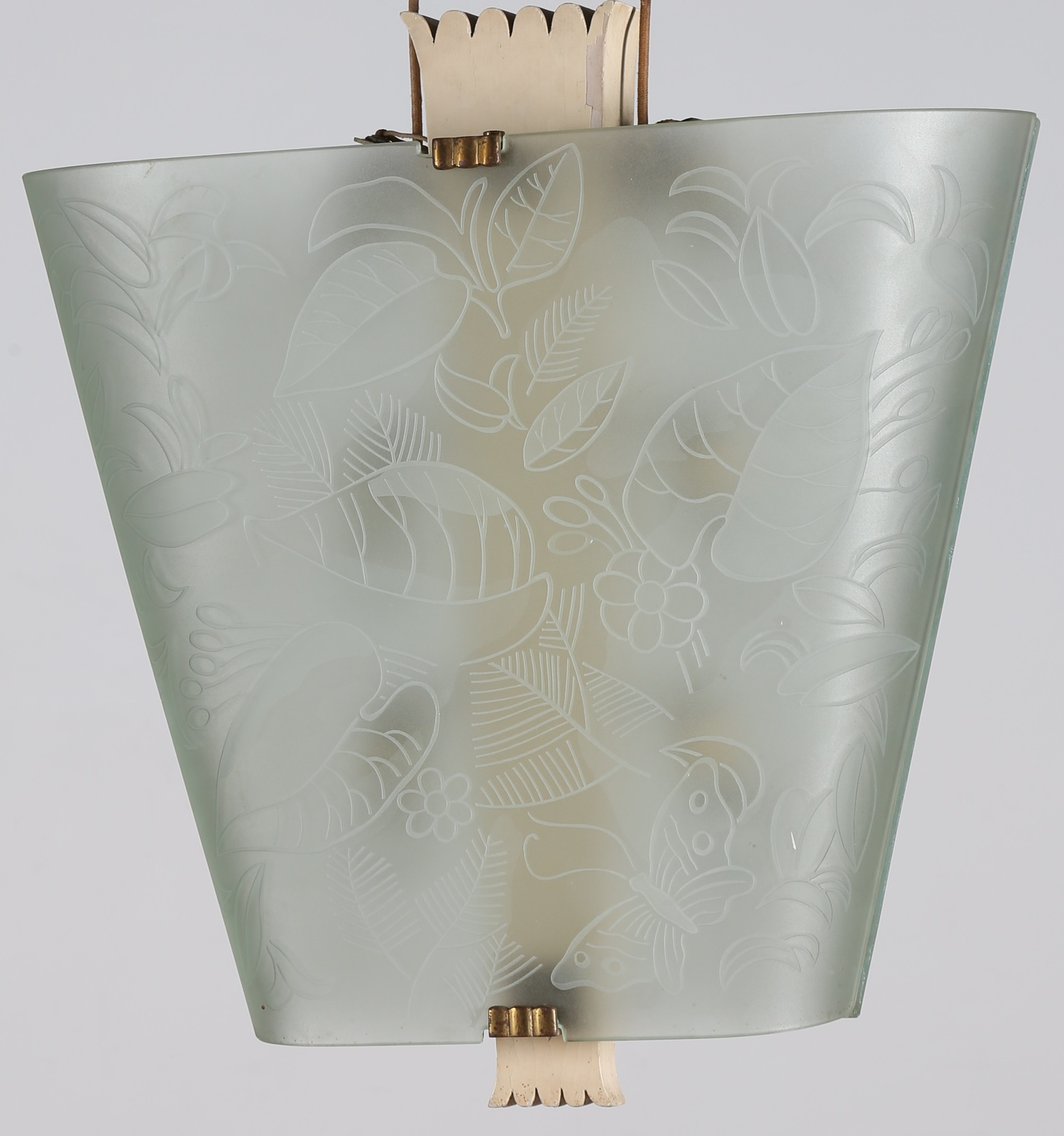 CHIESA PIETRO (1892 - 1948) Lampadario in legno laccato, ottone, cristallo molato e inciso, per Fontana Arte, anni 40. -. Cm 54,00 x 90,00 x 22,00.