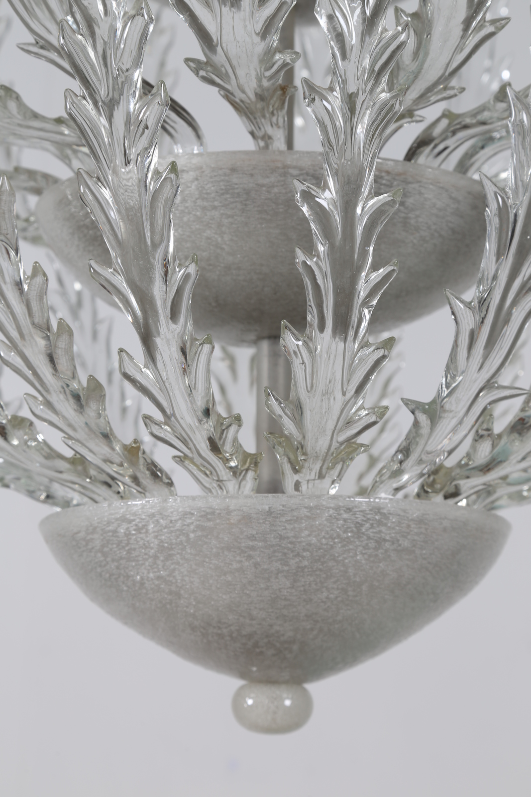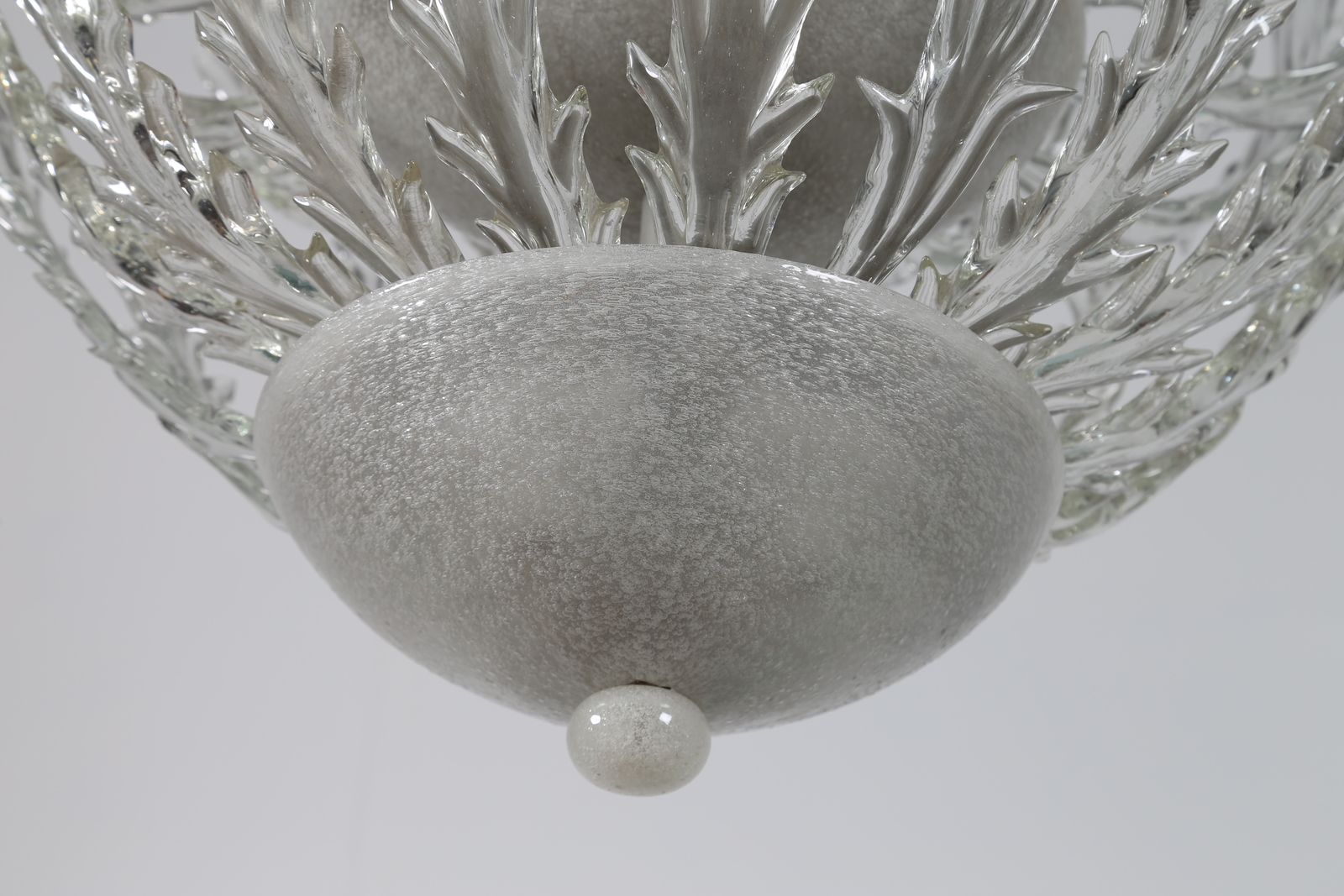 BAROVIER ERCOLE (1889 - 1974) Lampadario in vetro pulegoso e foglie in cristallo trasparente, per Barovier e Toso, anni 30.