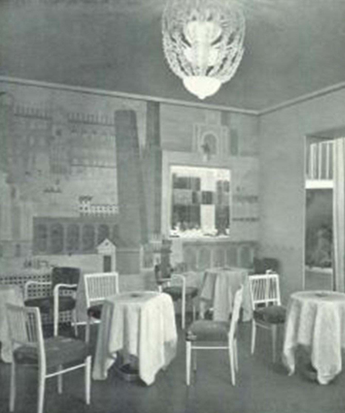Lo stesso modello è stato utilizzato dall’architetto Melchiorre Bega per gli arredi del bar pasticceria Majani in Bologna nel 1939, Pubblicazioni; Stesso modello Domus num. 146 febbraio 1940 pag. 87