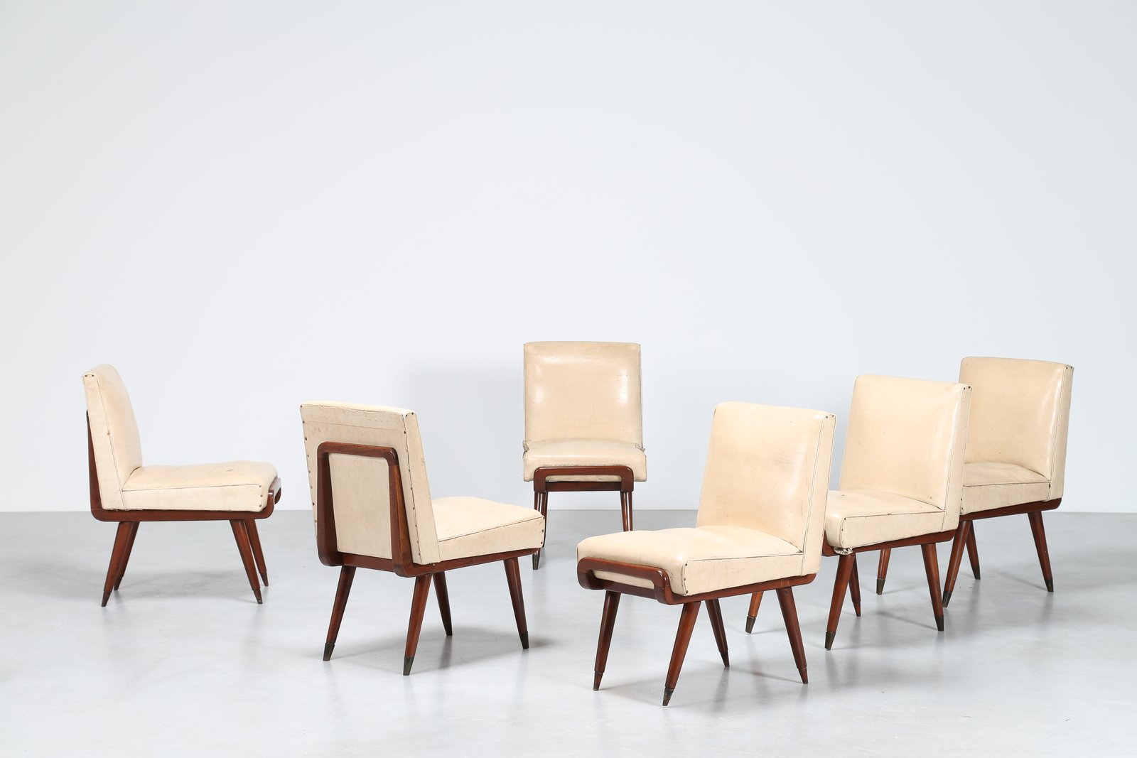 SCAPINELLI JOSÉ Attrib. Sei sedie in legno con puntali in ottone e sky...