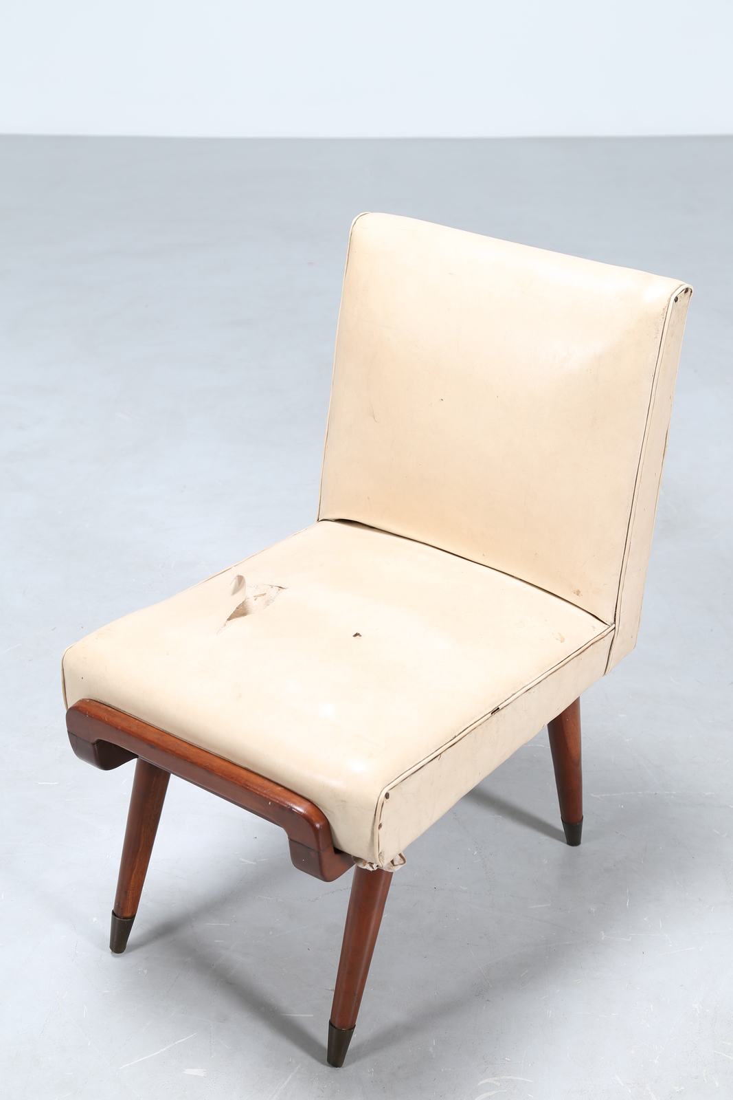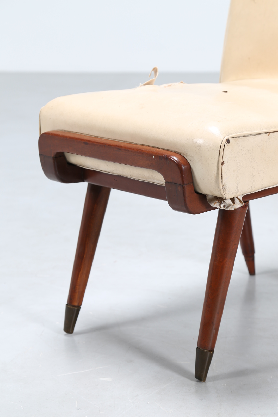 SCAPINELLI JOSÉ Attrib. Wood six chairs with brass tips and original sky, important origin home in Cuba, 50’s.