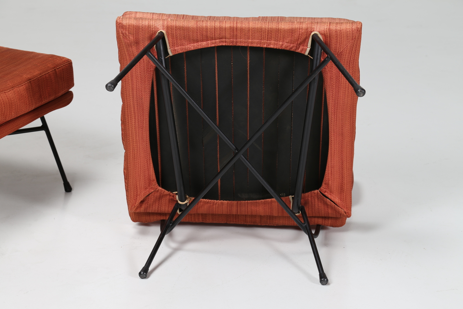 STUDIO BBPR (BANFI, BELGIOIOSO, PERESSUTTI, ROGERS) Pair of metal’s tube and original woven armchairs, mod. Elettra for Arflex, 1953. Literature; Domus num. 324 november 1953 cover and pag. 31, Domus num. 395 october 1962, pag. d/76; Giuliana Gramigna, Repertoire 1950-2000, Allemandi, Torino, 2003, pag. 31.