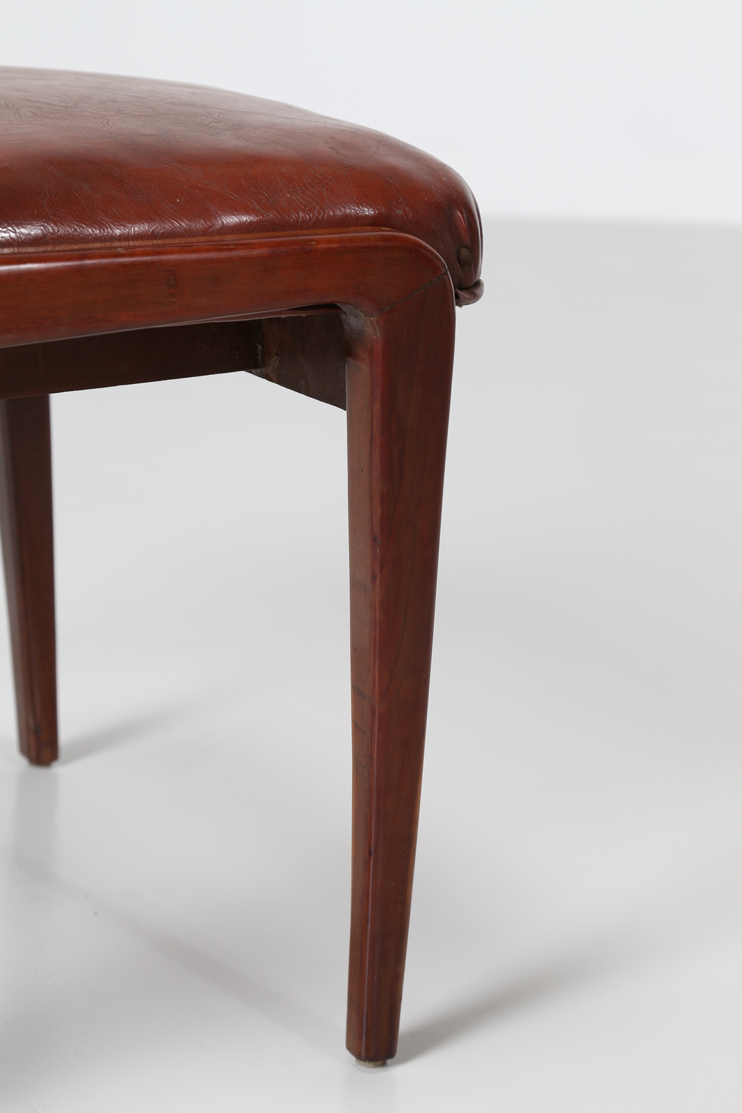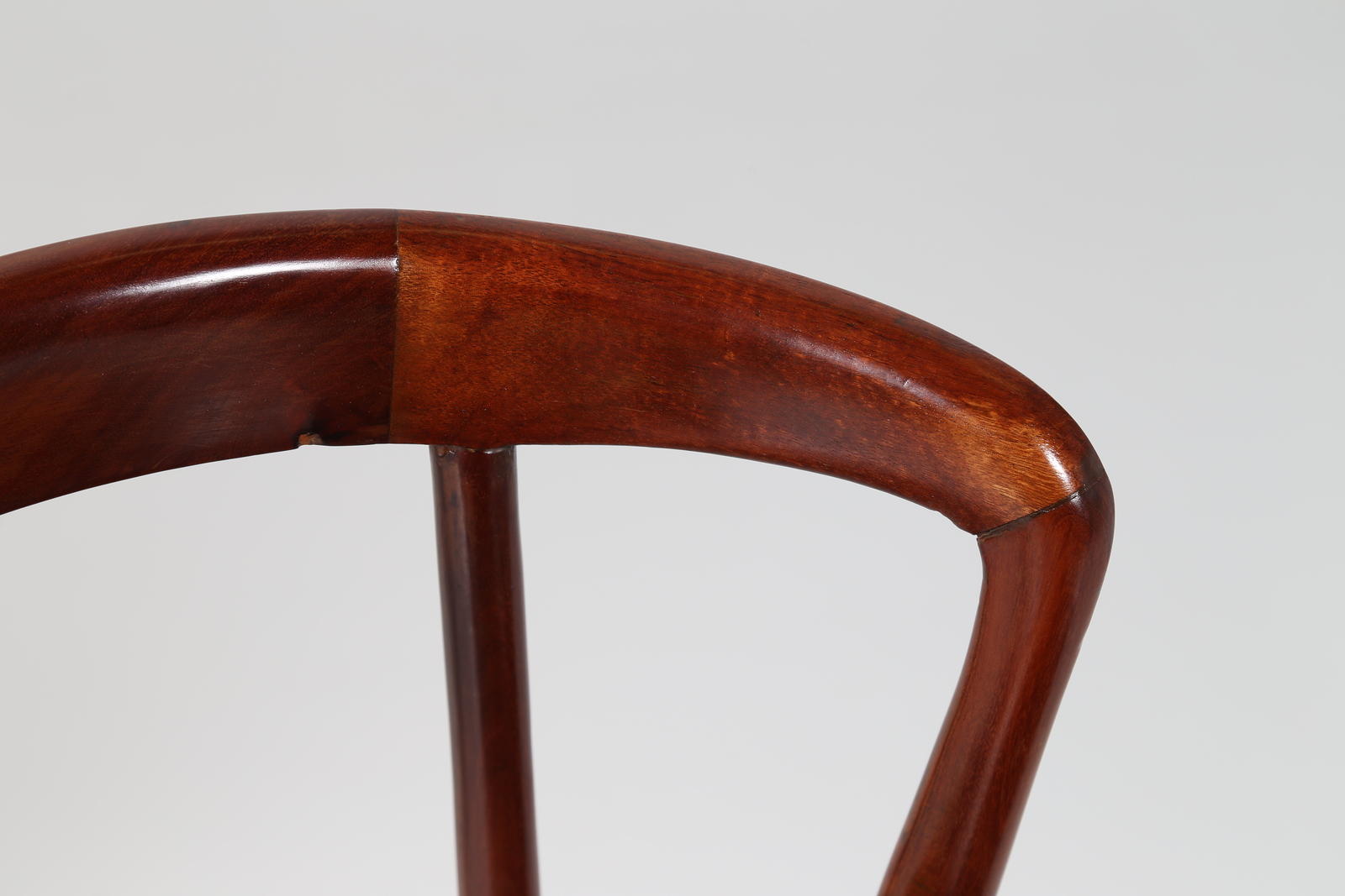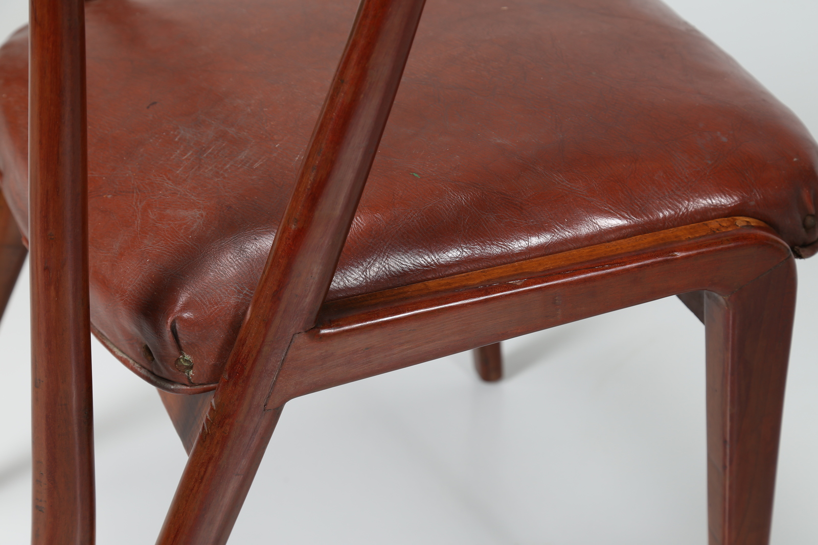 SCHAEFER BERTHA Six walnut and leather chairs, for Singer e Sons, 50’s. Literature; Singer e Sons producer’s catalog. . . Cm 50,00 x 77,50 x 53,00.