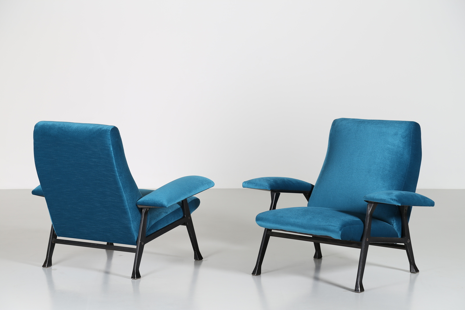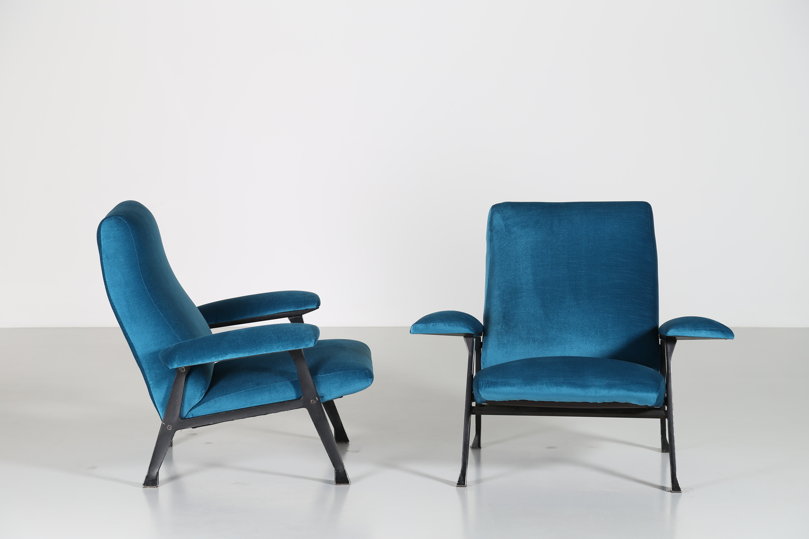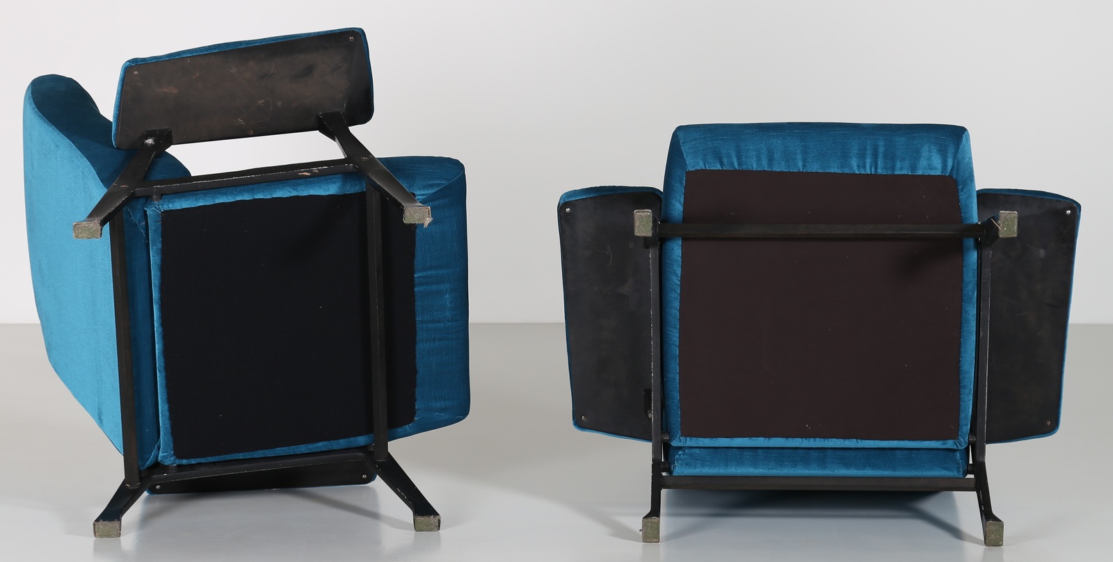 MENGHI ROBERTO (1920 - 2006) Coppia di poltrone in metallo stampato,...