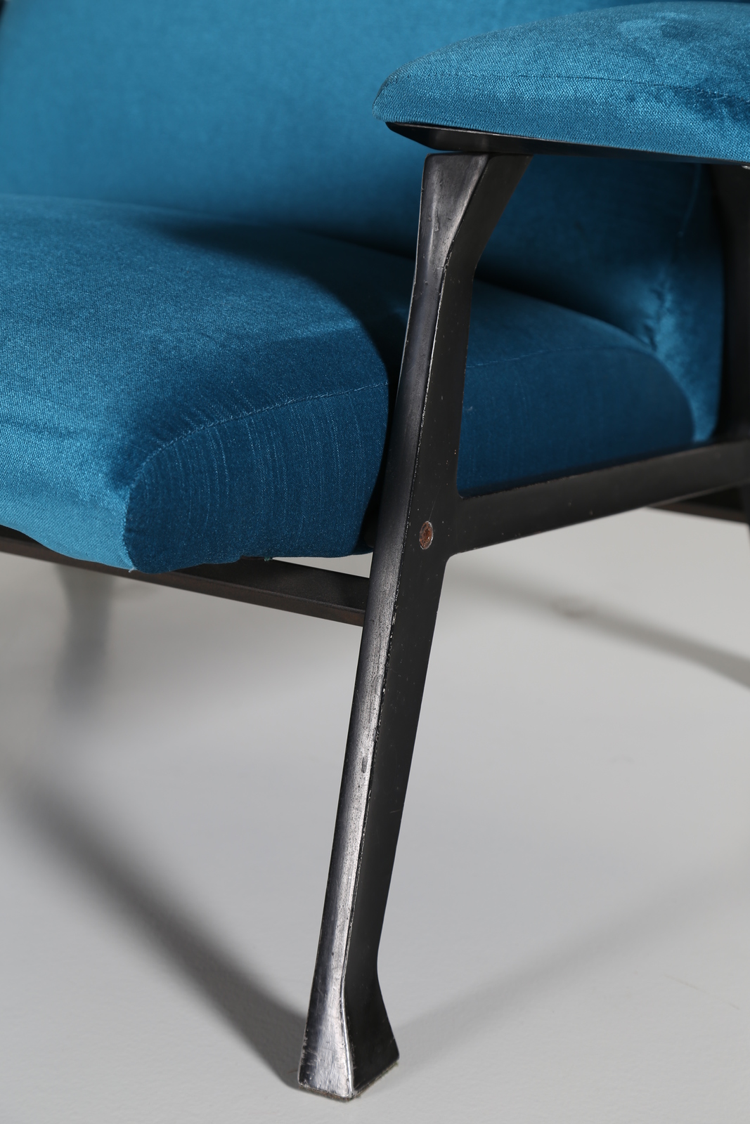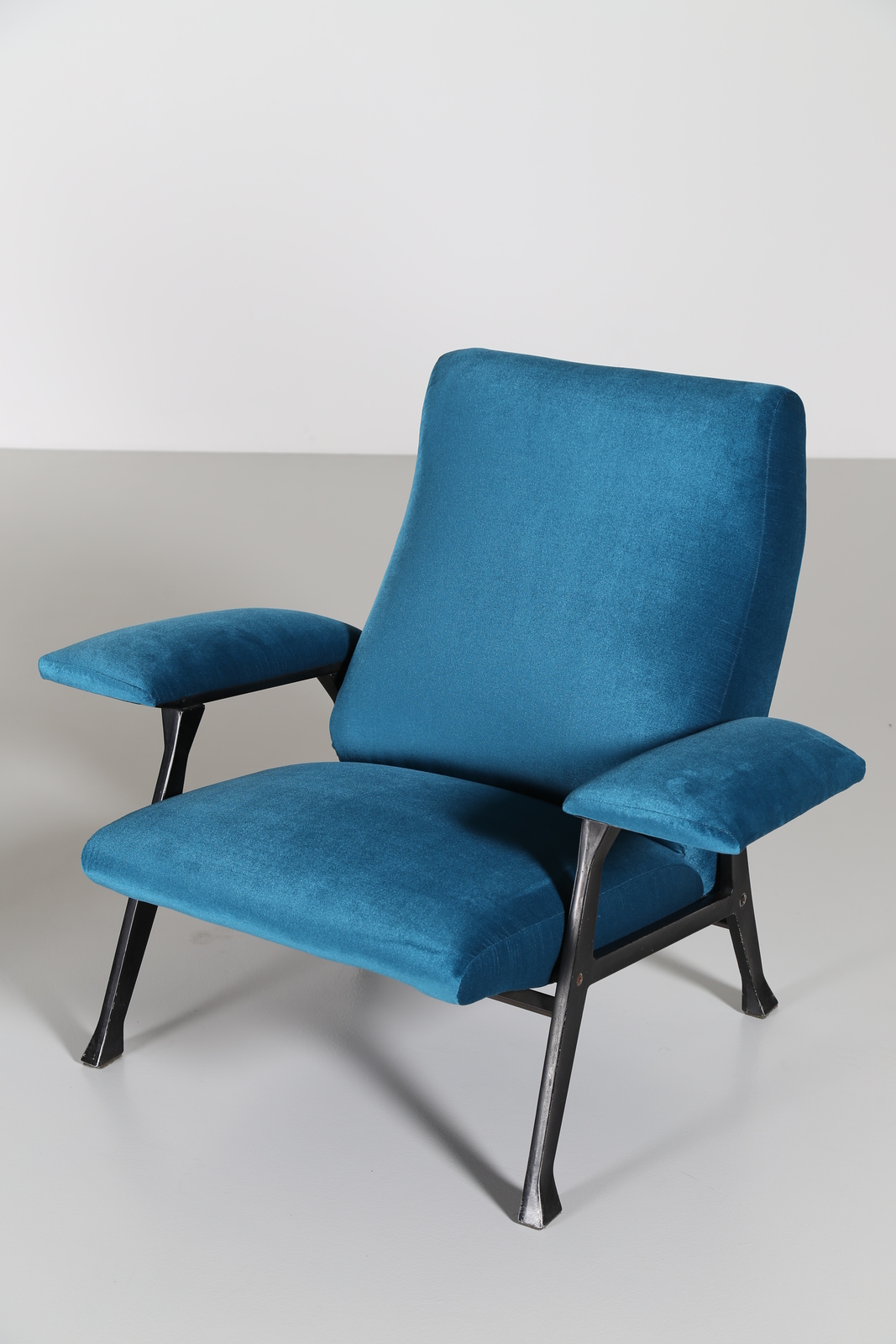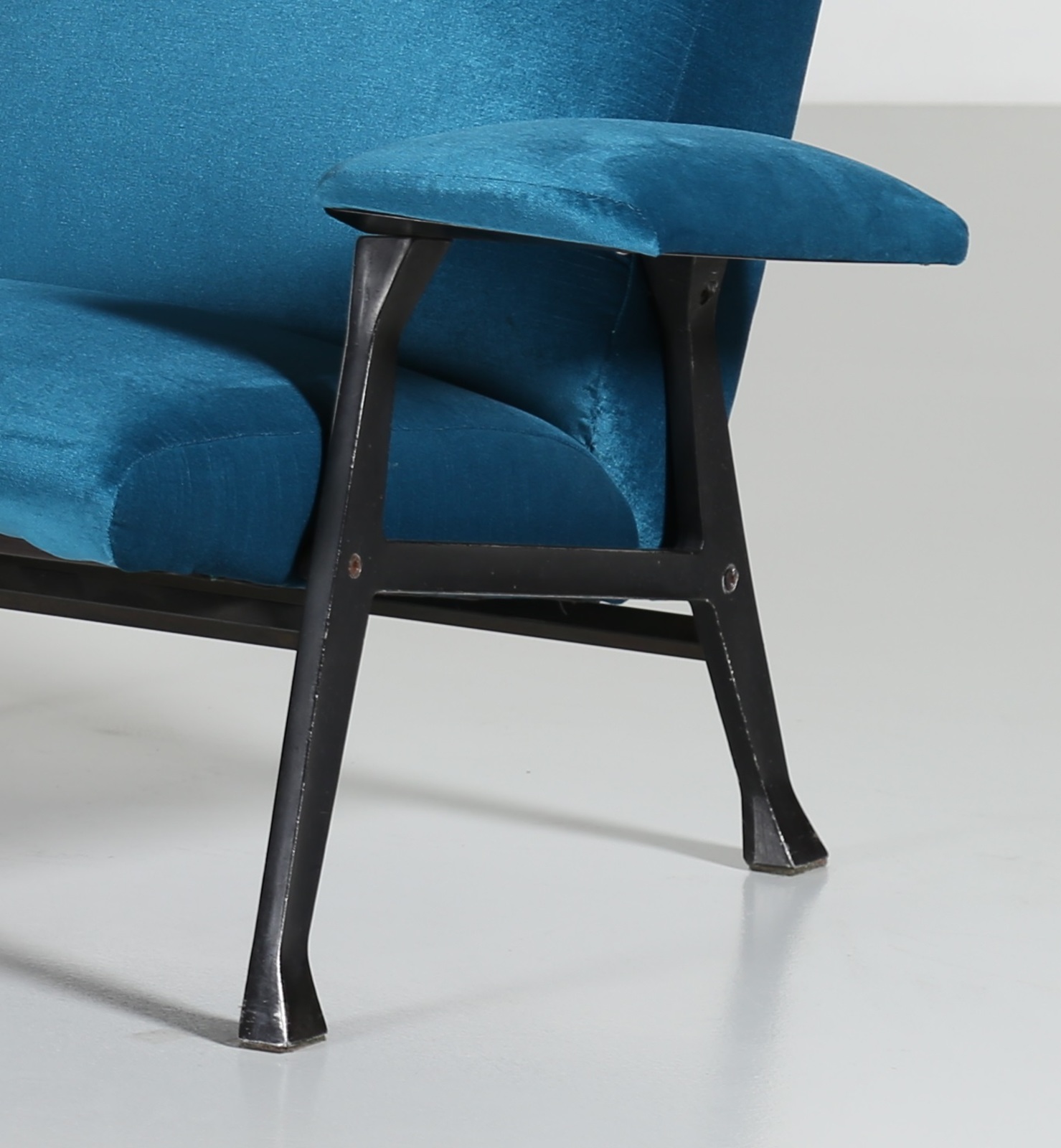 MENGHI ROBERTO (1920 - 2006) Pair of printed metal armchairs, foam lining for Arflex, 50’s, Literature; G. Gramigna, Repertoire 1950-1980, Mondadori, 1985, pag. 119.