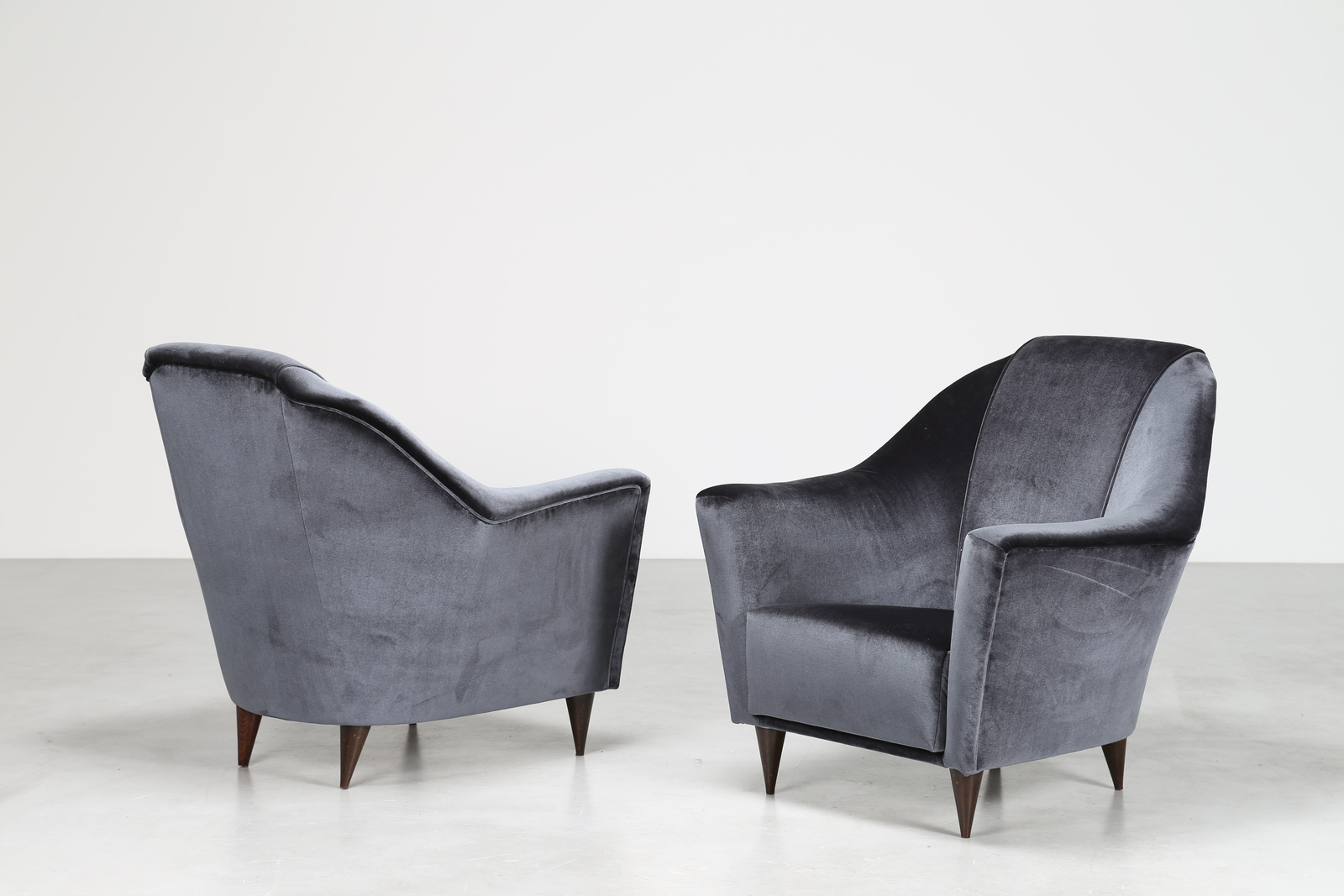PARISI ICO (1916 - 1996) Coppia di poltrone in legno e tessuto, per Ariberto Colombo Cantù anni 50. Disponibile certificato di autenticità, Archivio del Design di Ico Parisi.