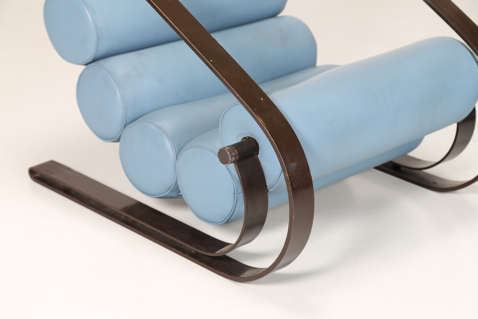 CECCHI MARZIO Pair of lacquered metal and leather armchairs , mod. Balestra for Studio Most in Firenze 1970.