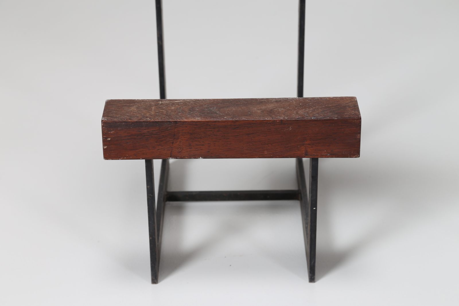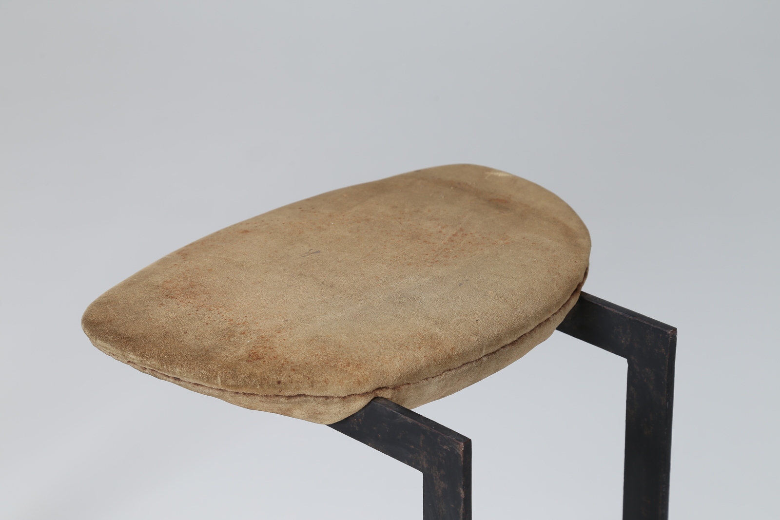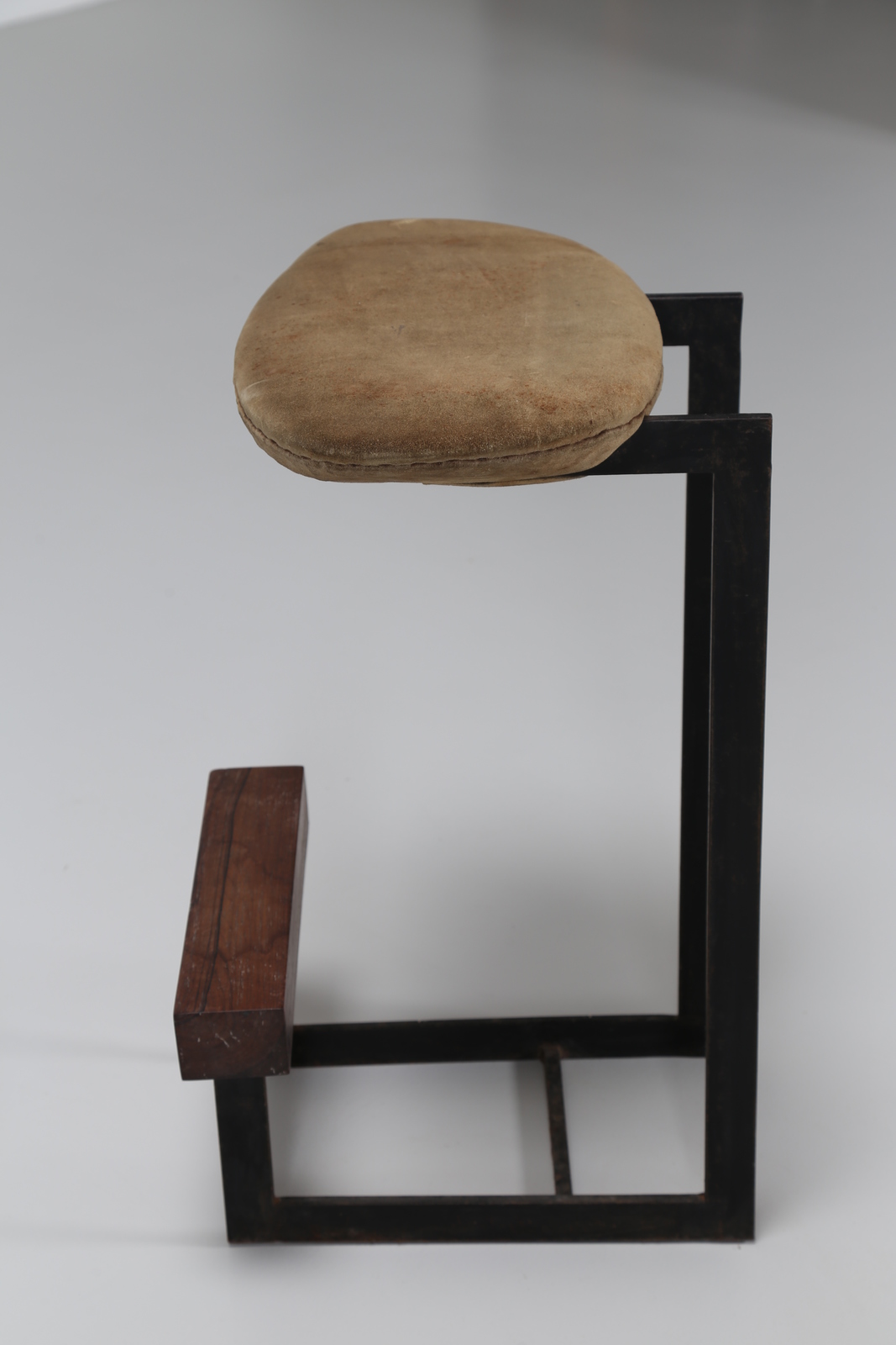 ZALSZUPIN JORGE Coppia di sgabelli in metallo poggiapiedi in legno e seduta in tessuto originale, mod. Gavea, per L’Atelier anni 50. . Cm 43,50 x 72,00 x 42,00.