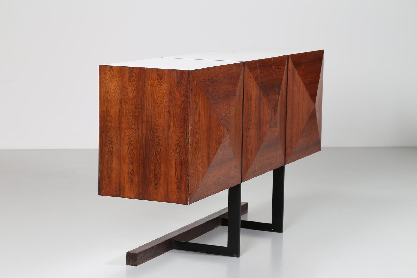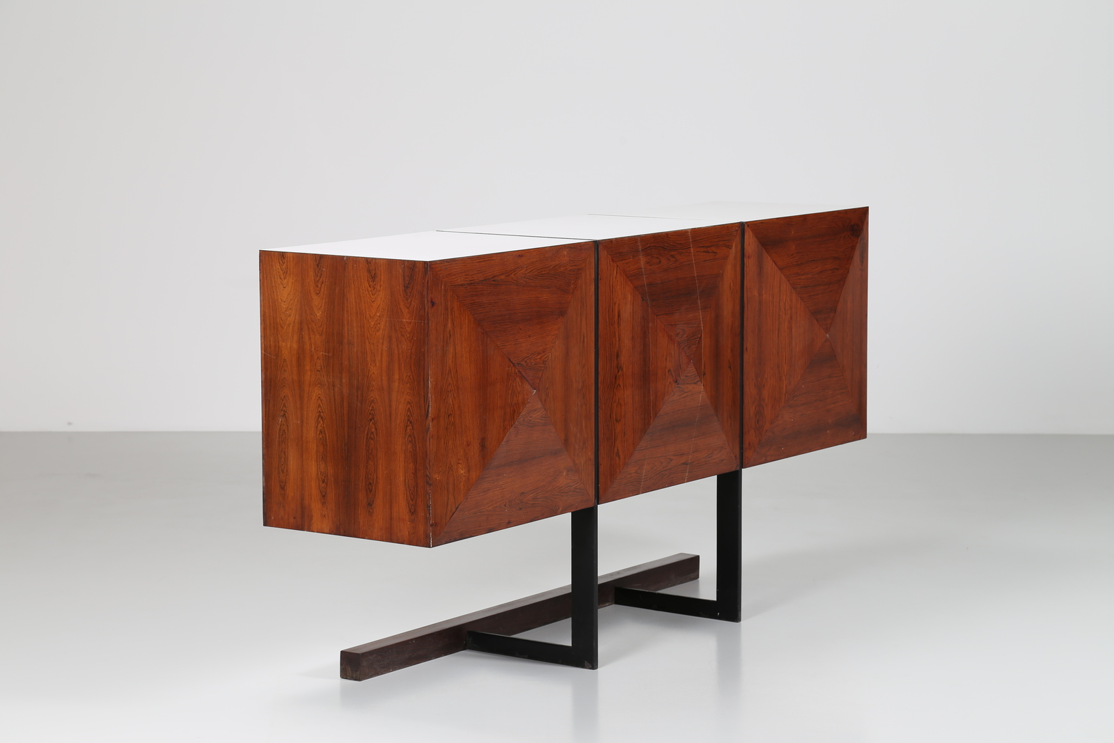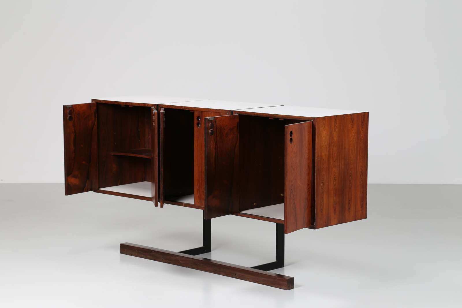ZALSZUPIN JORGE Mobile bar da centro in palissandro e metallo, mod.Gavea, per L’Atelier 1959