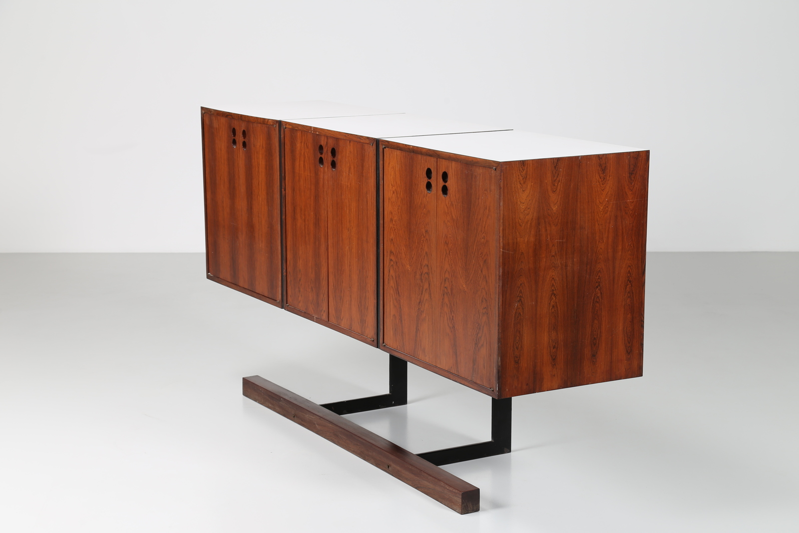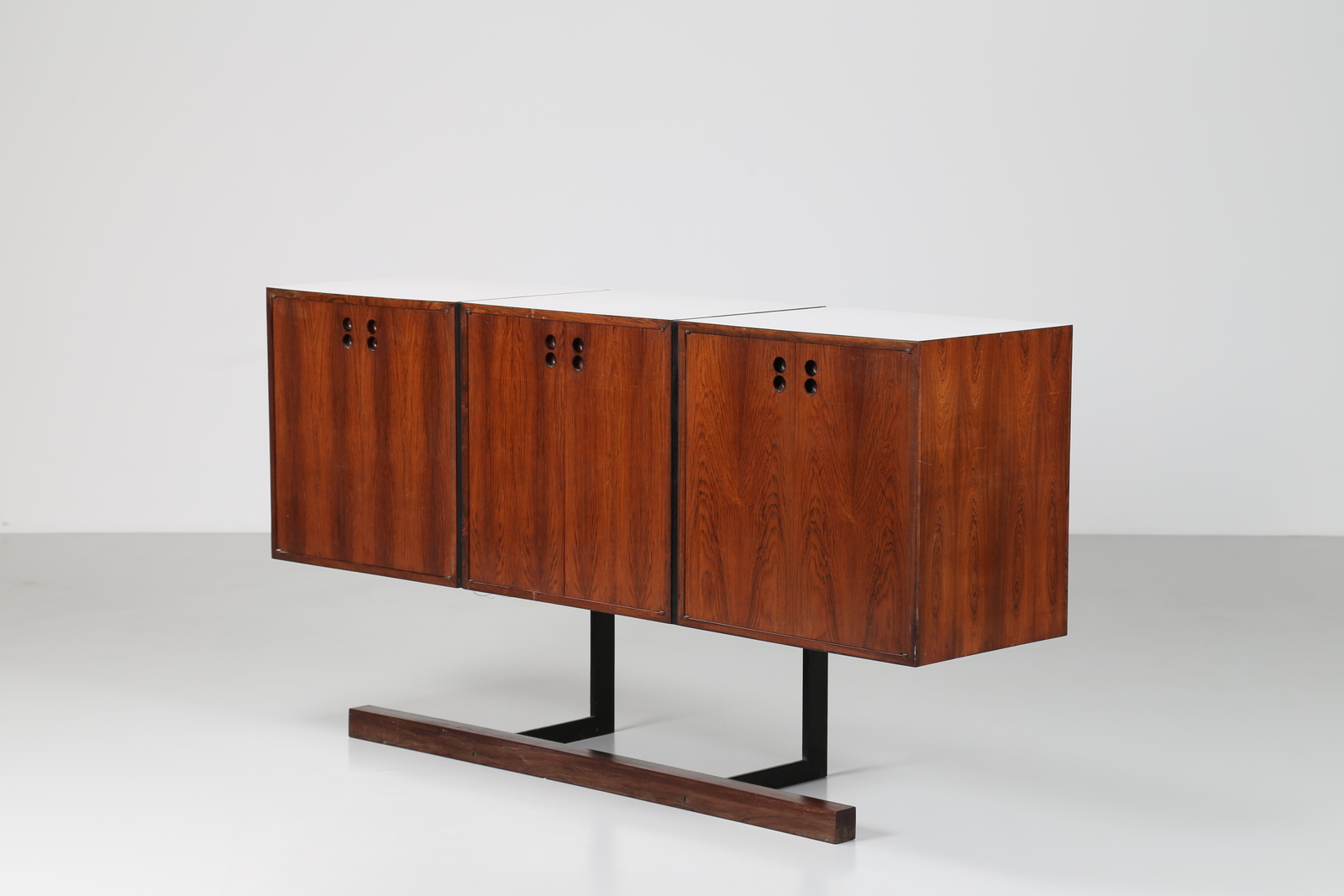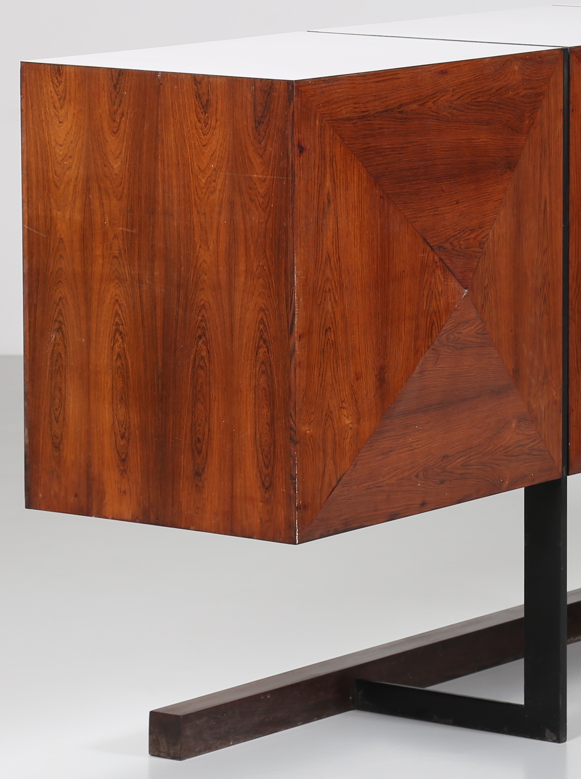 ZALSZUPIN JORGE Mobile bar da centro in palissandro e metallo, mod.Gavea, per L’Atelier 1959
