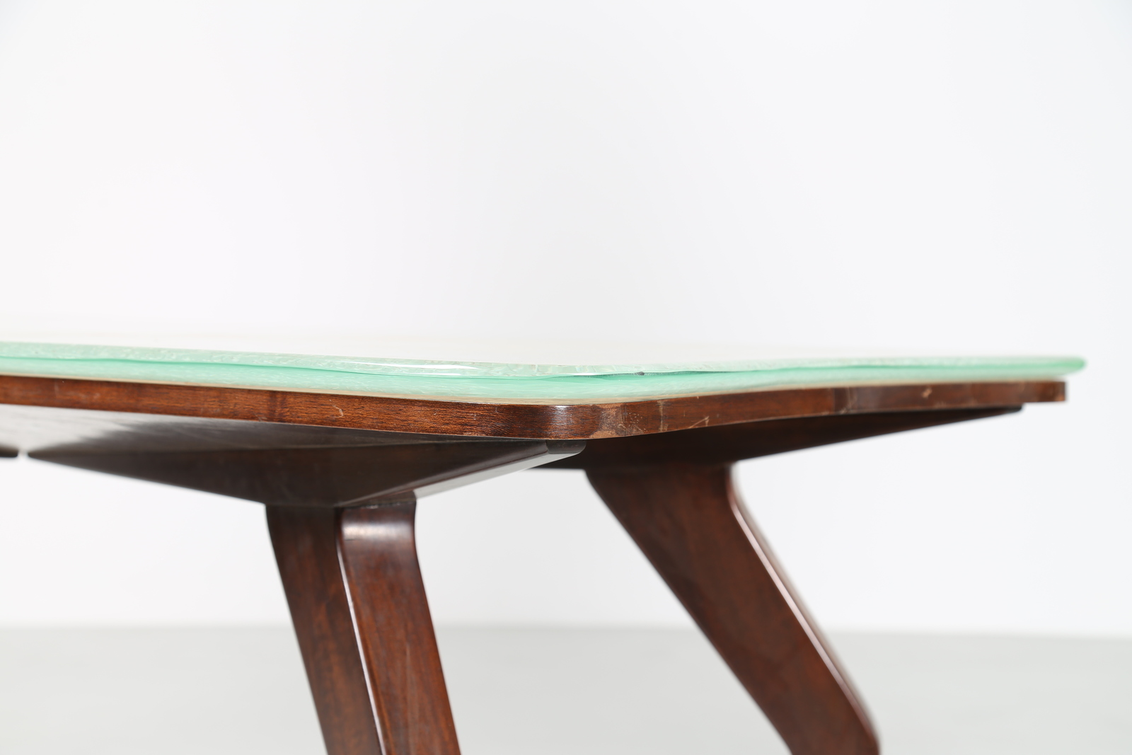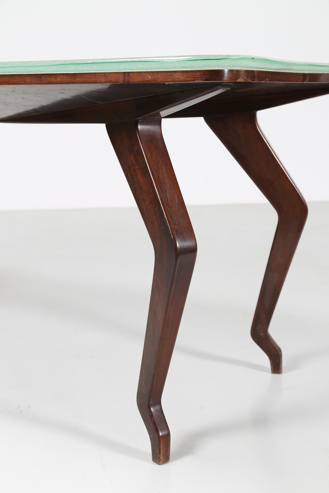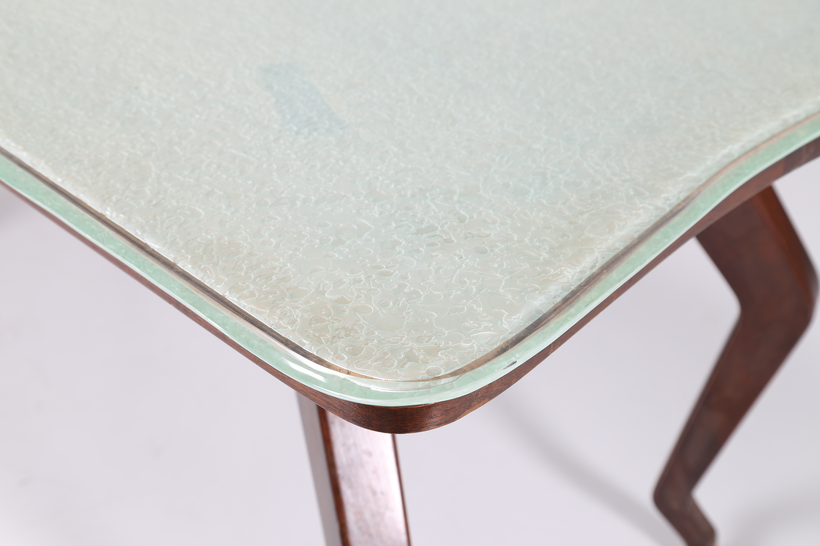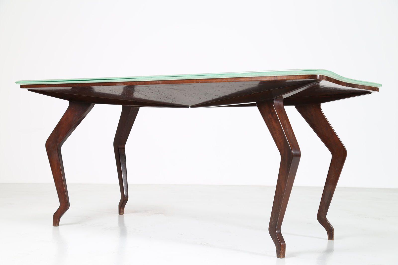BEGA MELCHIORRE (1898 - 1976) Tavolo in legno con piano in cristallo operato, anni 50. -. Cm 187,50 x 81,50 x 90,00.